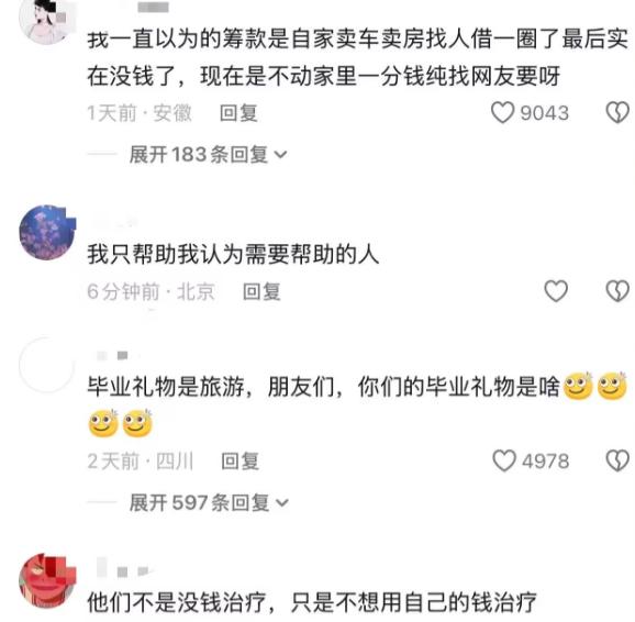 “这届网友真的变了!”四川“高反女孩”刚住进ICU,她的父母就在网上哭着求助网友捐助,可却得不到网友的同情了! “自己去旅游享受,出事了让网友买单?”众筹视频下的这条评论,像根刺扎在林月父母的心上。 2025年10月中旬,当他们抱着最后希望发起49万众筹时,没料到评论区会被这样的质疑淹没。 有人盯着母亲手腕上的金镯子,有人翻出林月一千多的徒步鞋,没人轻易再提半个月前,党岭山路上那场惊心动魄的救援。 谁还记得,林月刚被送进ICU时,医生说的那句“可能成植物人”? 当时她刚从普通病房转回来,前一天还能自己上厕所、说话,突然就昏迷了。 检查结果出来,高原性脑水肿、缺氧缺血性脑病,还引发了脑疝,必须手术取掉一块头骨减压。 49万的治疗费,对在纺织厂拧螺丝的母亲和种地的父亲来说,是把家里翻遍也凑不齐的数。 可网友不这么想。 “能负担国庆去四川的车费住宿费,就不能先跟亲戚借借?”有人算了笔账,林月的毕业旅行不算便宜,再加上两百多的帽子,怎么看都不像“走投无路”。 母亲后来在视频里解释,说那三个同行的搭子是青旅临时认识的,二十出头没经验,把林月托付给下山的人就走了. 事后还来医院送身份证道歉,“我们现在只想救女儿,不想怪谁”,可这样的话,没多少人听。 倒回去看10月2日那天,党岭的天气坏得离谱。 16岁的小橙跟着师傅陆先生下山,刚好碰到脸色惨白的林月,还有慌慌张张的三个搭子。 “她走不动了,麻烦你们带她下去”,搭子说完就追队伍去了。 陆先生一看就知道是严重高反加失温,赶紧扶着林月走,没走多远就遇到两支徒步队,里面有两位海军军医大学的女医生,立刻用保温毯裹紧她,用热水焐她冰凉的手脚。 没多久冰雹就下起来了,山路又滑又陡,救援队赶过来时,大家已经轮流背着林月走了好远。 有人的衣服被冰雹打透,有人的鞋子陷进泥里,小橙也帮着背了一段,直到把林月送上救护车,他没留名字就走了。 那时候林月还有点意识,能慢慢睁开眼睛,所有人都以为,危险已经过去了。 没人知道林月是个户外小白。 这场旅行是父母给她的毕业礼物,刚从卫校毕业的她,连徒步攻略都是在小红书上查的。 听说党岭的秋天是“川西天花板”,反穿路线适合新手,就约了青旅认识的两男一女出发了。 出发当天她就头晕,同行的人说“第一次上高原都这样”,谁也没当回事,直到爬到4500米垭口,她才彻底走不动。 这事儿总让我想起另外两件事。 去年云南有个男孩徒步高反,家长众筹50万,结果网友发现他家开着两家商铺,最后众筹只能下架。 前年西藏有个骑行者失温,先卖了装备、借遍亲戚,差10万才众筹,还晒了凭证,网友很快就帮他凑齐了钱。 两对比就清楚,网友不是没同情心,是怕善意被浪费。 现在网上还在聊林月的事,有人说“搭子文化太不靠谱”,有人说“年轻人别被‘说走就走’忽悠了”,更多人在想“众筹到底该帮什么样的人”。 不少自媒体博主已经下架了相关视频,林月父母说女儿性格敏感,怕她醒了看到负面评论受刺激。 其实网友的质疑,不是冷漠,是见过太多“自己不动钱先找网友要”的情况,慢慢变清醒了。 就像在党岭的冰雹夜里,大家愿意冒风险救人,是因为那是生命攸关的时刻。 那么到最后,你们是怎么看的呢? 如果各位看官老爷们已经选择阅读了此文,麻烦您点一下关注,既方便您进行讨论和分享,又能给带来不一样的参与感,感谢各位看官老爷们的支持!