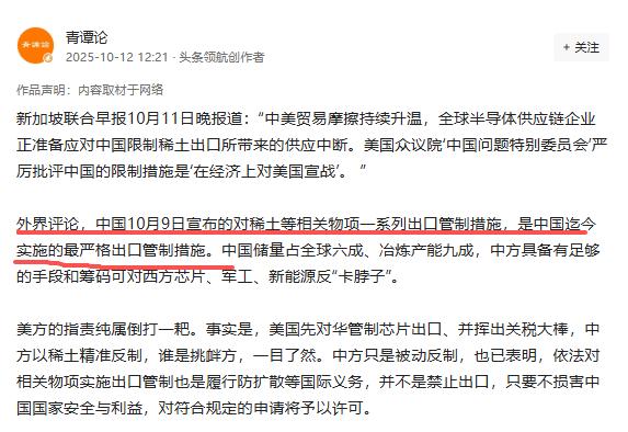 -氛围非常的诡异!在我们实施西方世界口中所谓迄今为止最严格出口管制措施之后,一个非常让人感到诡异的事情发生了。其一是,美国方面虽然非常的愤怒,但是美国竟然没有宣布任何立刻生效的反制措施,特朗普还表示愿意跟我们谈,这太不同寻常。其二是,除了美国公开表示没有实质性反制措施的不满外,那些西方国家现在竟然都一声不吭。 10月9日,中国宣布了对稀土等相关物项一系列出口管制措施,按惯例美国应该马上强硬回击,结果特朗普却放缓调门,表示还愿意讨价还价。 虽然国会山那边气势汹汹,给中国管制贴上“经济宣战”的标签,嘴上狠话说了不少,但具体动作却并没有跟上。 这种嘴硬手软,一看就有点尴尬,背后其实是美国内部在策略上吵得不可开交,说到底太清楚自己要是真正对上中国,吃亏的还是自己。 除了美国,欧洲、日本、韩国这些老盟友这次也都格外安静,没有站队,也没表态,更没有以往烘托气氛的谴责,他们全在低调观察。 其实他们心知肚明,这场风波一旦真闹大,很可能会砸到自己产业链上,关键资源一旦断了,他们第一时间遭殃,所以全都明哲保身,避免自找麻烦,说白了,这种低调观望不是不在乎,正是因为太在乎,一步踏错小心成了替罪羊。 事件之所以搞成这样,其实有前兆,中国以前就试过打稀土牌,西方国家也吃过苦头,几次小试牛刀后,西方国家立刻觉得不好受。 美国和欧洲都清楚,这回中国肯定不是来搞花架子,真要硬碰硬,首当其冲受害的就是自己,曾经一心搞全球化、削成本,把所有命脉交给中国,现在轮到后悔了,中国掌握着卡脖子的关键,这让所谓的霸主老美不得不收敛。 出现在眼前的安静与克制,比什么都能说明问题,美国没有实际反制,盟友们闭口不言,这等于在承认中国的筹码够硬,谁要是这个时候出来对着中国喊打喊杀,那就是自找苦吃。 我们有的是办法让全球企业都乖乖听话,就连那些打惯贸易牌的美国公司也不敢冒险顶撞。 这场贸易管制不仅关乎几个产业,更是在全球大局中刻下一道分水岭,过去,美国靠着自己的实力,在盟友面前一呼百应,现在可没人愿意火中取栗。 所有人都在算计,真正关键的时候保护自己利益才是硬道理,美国也不得不承认,在关键资源上它没有控制权,而中国逐步建立起自己的规则和影响力。 如果说这次出口管制像一面镜子,那它照出了全新的国际关系格局,不难看出原本的单极老路慢慢被我们推翻,一个多极化制衡的新世界正加速到来。
