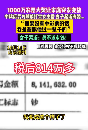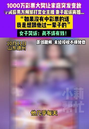 “有钱就变坏?”山东,一男子花42元买彩票,竟中奖1000多万,税后到手814万元。可是暴富后他就飘了,班也不上了,天天不是打麻将就是玩,还在网上给不同的女主播狂刷礼物。对妻子却一毛不拔,之前说好给老婆300万养老的卡,里面也根本没钱!妻子寒了心:“他真不该有钱!” 你看看这张卡,他说里面有300万给我养老,现在连一分钱都没有! 10月,山东德州的苑女士坐在自家客厅的旧沙发上,手里捏着一张银行卡,指节因为用力而发白。 窗外的阳光刺得她眼睛发酸,声音里满是压抑不住的委屈和愤怒。 事情要从去年12月17日说起,苑女士的丈夫是一个追了十几年彩票的老彩迷。 那天,他拿着两张皱巴巴的彩票冲进家门,声音抖得不成样子,中了!中了1017万! 税后到手的814万,成了这对结婚九年夫妻的“幸福炸弹”。 说起当时的情景,苑女士的眼眶红了。 两人激动得一宿没睡,坐在床上谈起了这笔钱的用处。 她还记得丈夫当时连连点头,说“都听你的”,还特意去银行办了张新卡,塞到她手里说“这里面300万,你放着养老,咱们以后不愁了”。 那时候的她满心欢喜,连卡都没看就塞进了抽屉,觉得九年的苦日子总算熬出了头。 可这份热乎劲儿没持续多久,丈夫就像换了个人。 以前他虽然爱买彩票,但下班就回家,会帮着做饭看孩子。 中奖后却天天泡在麻将馆,半夜回来时一身烟酒味,手机屏幕亮个不停。 苑女士后来才知道,那些深夜里,丈夫正对着直播平台给女主播刷礼物,手机屏幕上全是“嘉年华”“火箭”的特效。 主播一口一个“大哥”喊着,他就越发舍得花钱。 更让她心寒的是丈夫的夜不归宿。 今年7月,丈夫说去邻市买茶叶,一去就是四天。 苑女士打听着他返程的车次,特意炖了汤去车站接他。 可当看到出站口的景象时,她手里的保温桶“哐当”掉在地上,丈夫正牵着一个年轻女人的手,两人有说有笑,亲密得像小夫妻。 那女人她认得,就是丈夫手机里经常出现的本地女主播。 丈夫看见她的那一刻,脸一下就白了,还撒谎说‘这是朋友,顺路帮我带菊花茶’。 苑女士说起这话时,声音都在发颤,菊花茶能让你们手拉手?能让你们消失四天? 更让她崩溃的是,丈夫后来竟然直白地说“我俩没孩子,我想找个主播给我生”。 心灰意冷的苑女士提出离婚,这才想起抽屉里那张300万的银行卡。 她揣着卡去银行查询,柜员的一句话让她眼前发黑,女士,这张卡余额是0。 查了流水才发现,中奖后的第三天,丈夫就把814万里的710万全部转走了,那张给她的卡从一开始就是空的。 找到丈夫对峙时,他的反应更显冷漠,钱我花了,还赌了点,你不是起诉了吗?等开庭再说。 苑女士没办法,只好抱着最后希望向小莉帮忙求助,还拿出了丈夫和别人的聊天记录作为证据。 她们找到那位女主播时,对方却满不在乎,他打赏的又不止我一个,我俩就是线上认识的。 我离婚单身,就算找对象也不会找他,他愿意刷我凭什么退?要退找平台去。 而直播平台对此事始终沉默,仿佛什么都没发生。 这事传到网上,网友们炸开了锅。 有人心疼苑女士:“陪吃九年苦,最后落得人财两空”。 有人骂她丈夫:“钱是照妖镜,把自私本性照得明明白白”。 也有少数人说“中奖钱该他自由花”,立刻被反驳“夫妻不是同林鸟,富贵不能只顾自己”。 其实这种事并非个例,美国国家经济研究局的研究显示,彩票中奖者的离婚率比普通人高出不少,财富往往会放大原本隐藏的矛盾。 就像心理学专家说的,突然暴富容易让人陷入身份认同危机,总想着用花钱证明自己,可忘了身边人才是最该珍惜的。 那张42块钱的彩票,中了千万奖金,却没中到人心;那张300万的空卡,装不下承诺,只照出了自私。 说到底,钱从来不是婚姻的试金石,人心才是。 信息来源:小莉帮忙2025-10-12发布视频