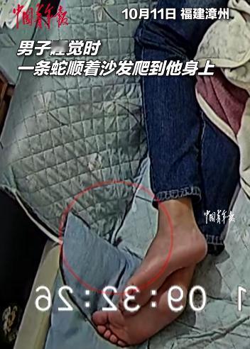 福建漳州,男子沙发上睡觉,突然感觉背上有东西在爬,他瞬间惊醒后,翻身将其打掉,他