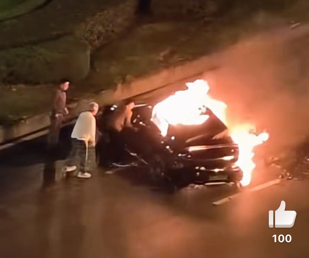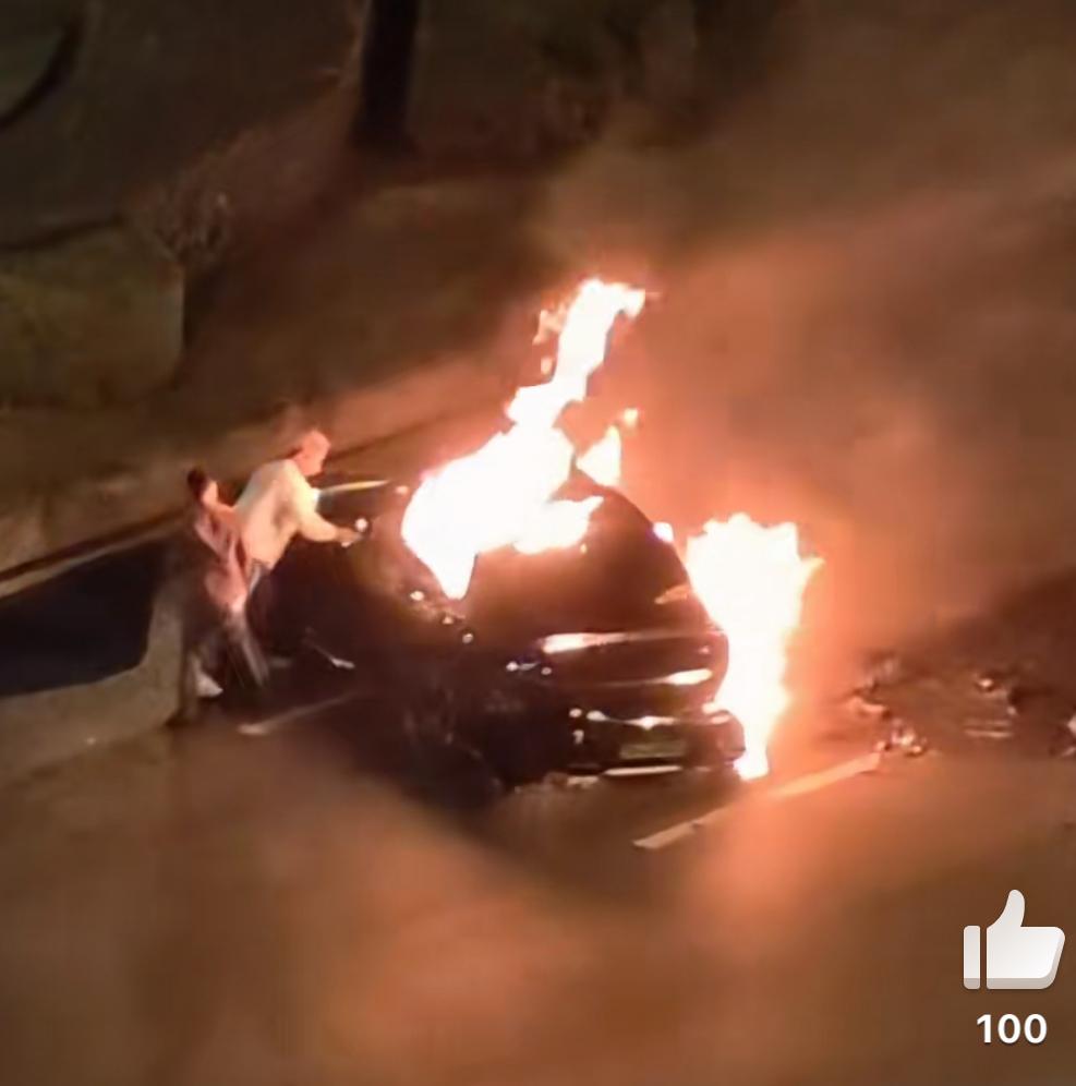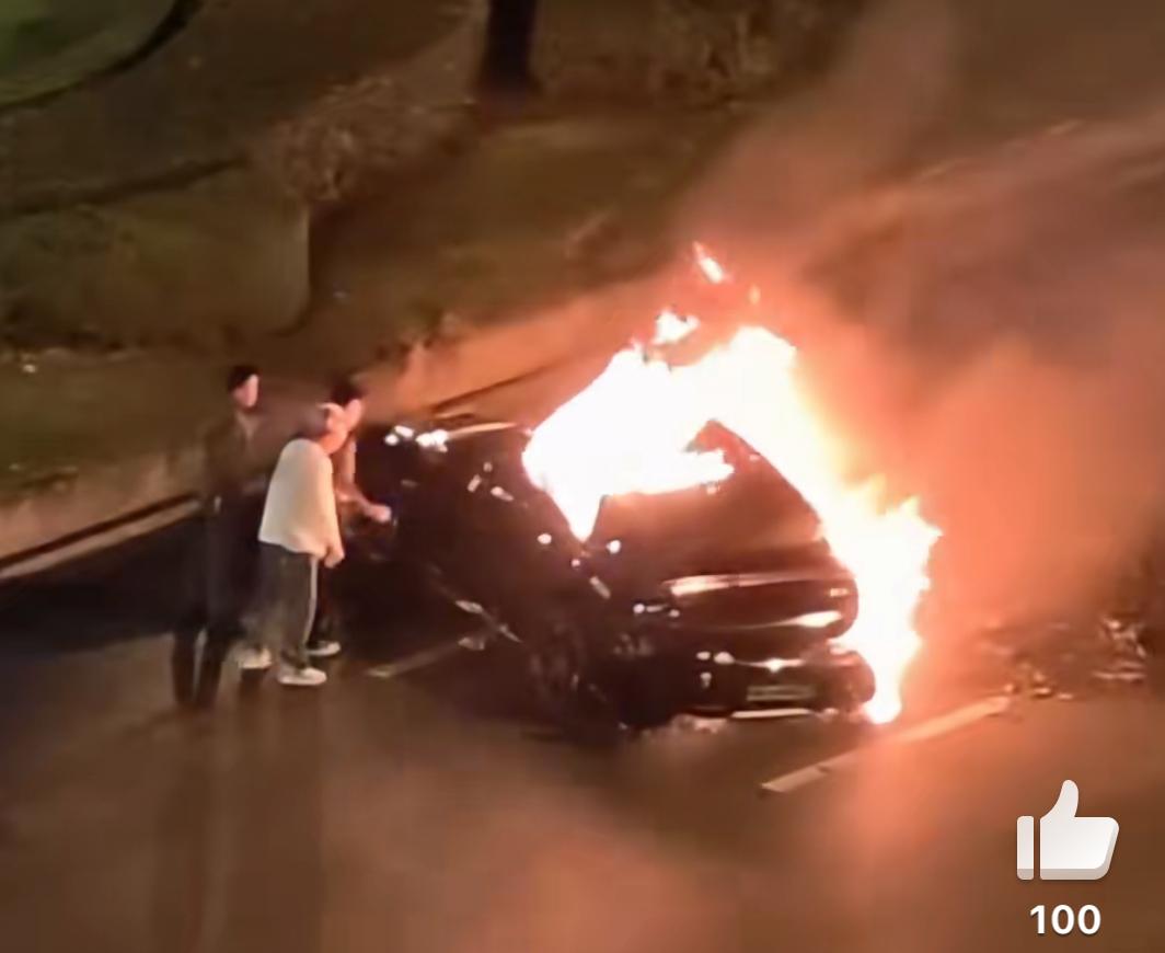 成都一辆某米超速追尾自燃,多人尝试砸玻璃、拉车门救人未果,眼睁睁看着车主被烧死。