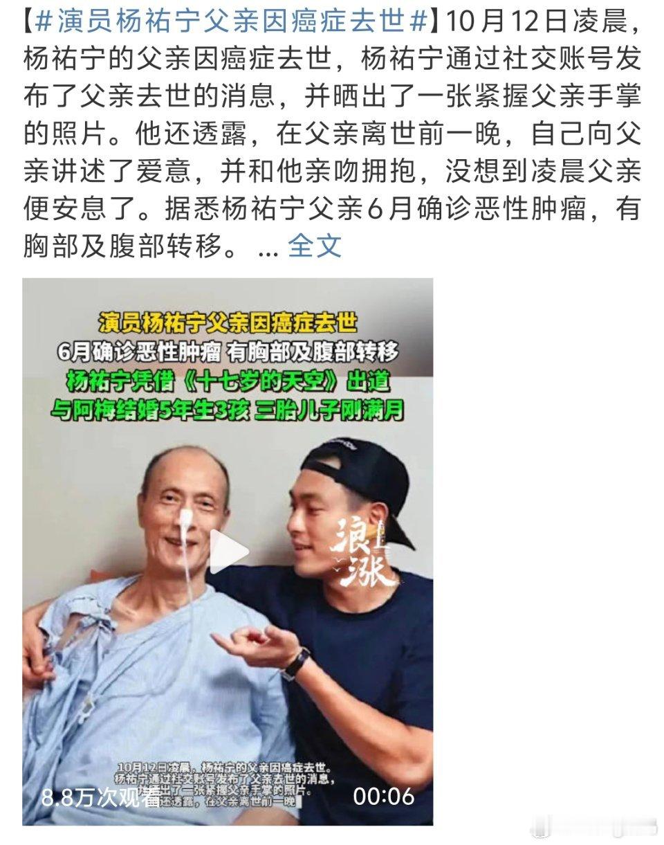 演员杨祐宁父亲因癌症去世