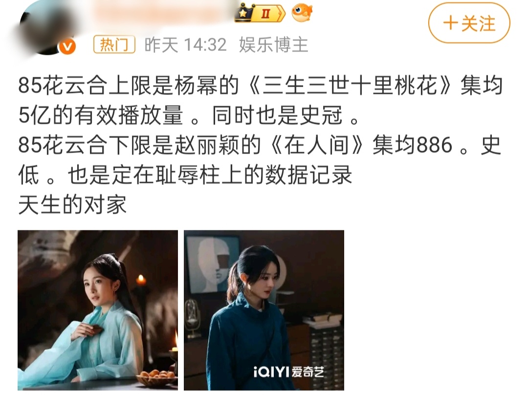 85云合上限是杨幂的三生三世十里桃花5亿有效播放量,下限是丽的在人间886,你认可吗?