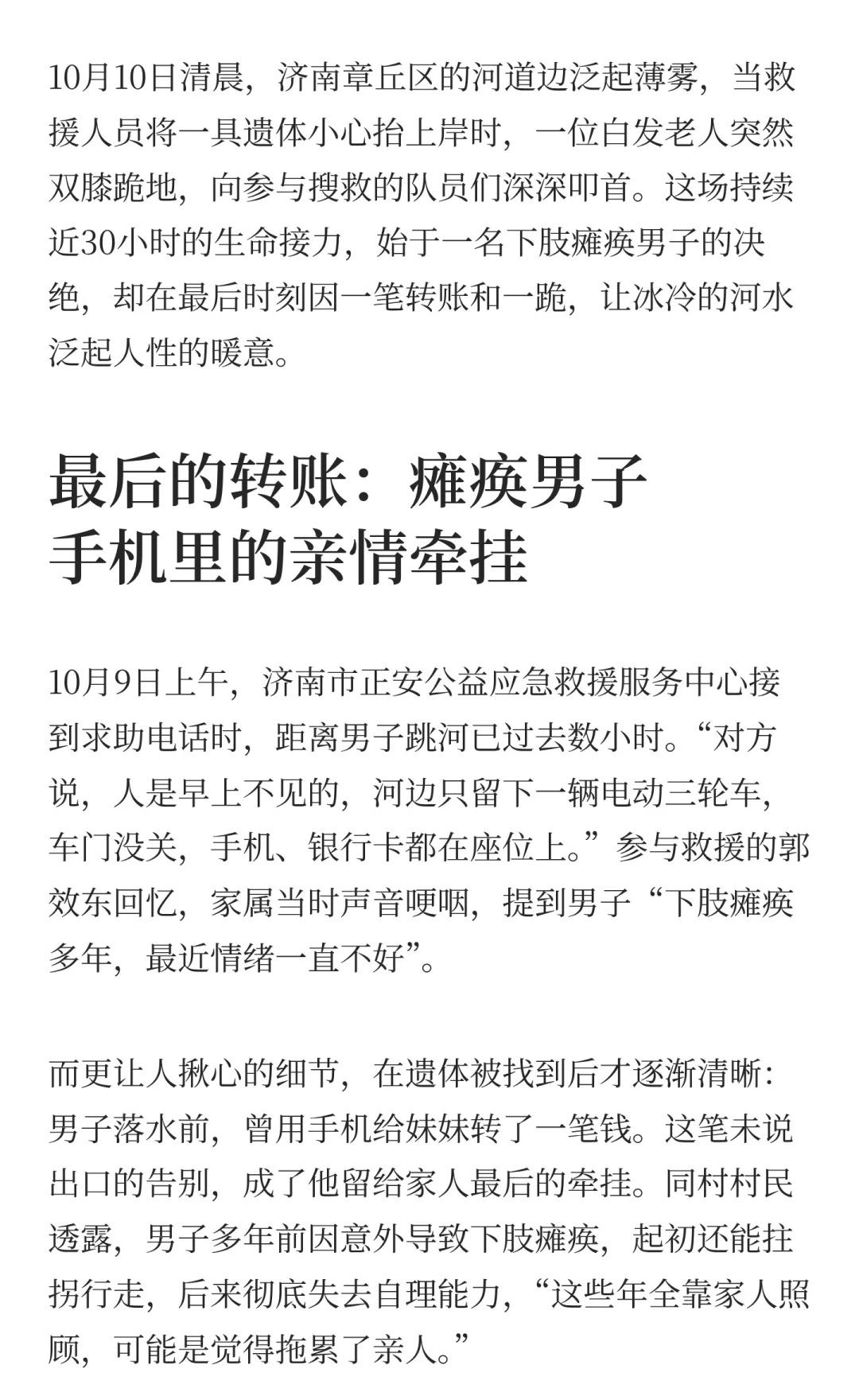 生命最后转账的温度济南救援人员接力搜寻 济南救援故事人间温情生命之光公益