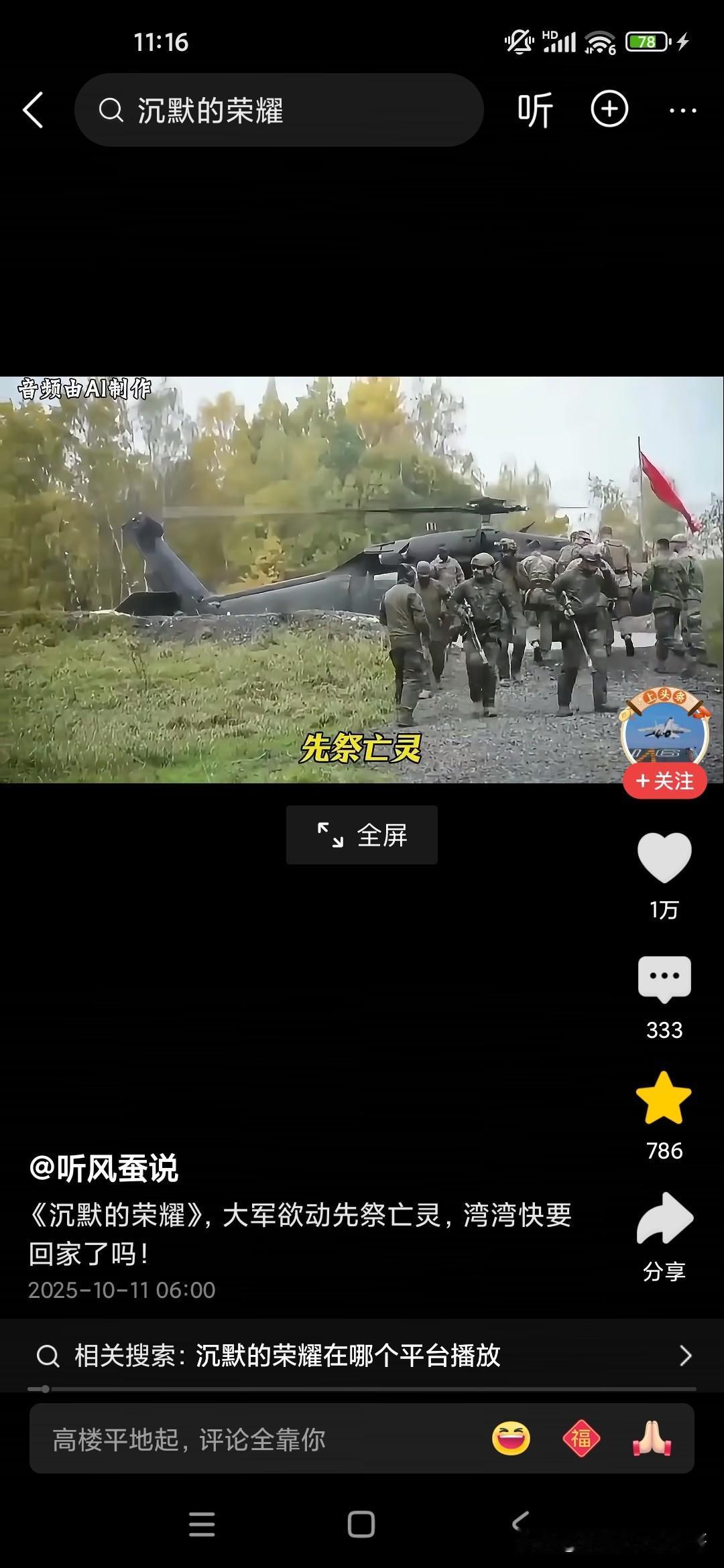 大军欲动,先祭亡灵!昨天听风的蚕对于沉默的荣耀这部电影的评论,觉得他说的还是蛮有道理的,那就是当年中共地下党在湾湾省也做出了很多努力,但是就有个被叛徒出卖,结果全军覆没,所以没有岛内中共地下党的啊响应,再加上当时中国的海军力量太过于薄弱,还有我们在东山岛全军覆没了8000多人这样惨痛的教训,再加上外部因素的干涉,包括美国第七舰队进驻台湾海峡,再加上这个湾湾地区把很多大陆的黄金呀,财产呐,包括这些专家呀都带到台湾省,所以说一直导致双方经济发展不平衡,直到现在我们逐步追赶上台湾省,但是在之前为什么一直没有播放,而到现在才播放了,那说明我们离解放湾湾呃没有多远,一般来说一个人有什么心愿的话会去祭奠祖先,给祖先说一说自己内心的心愿,希望祖先能保佑自己,我们纪念这些已经忘却的无名英雄,也是为即将的行动做一些准备,我相信离湾湾回家应该不远了!