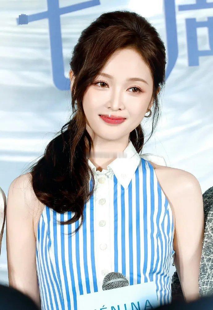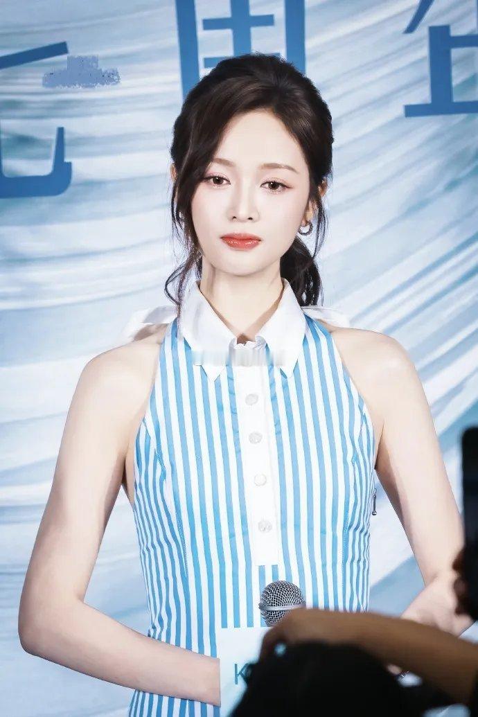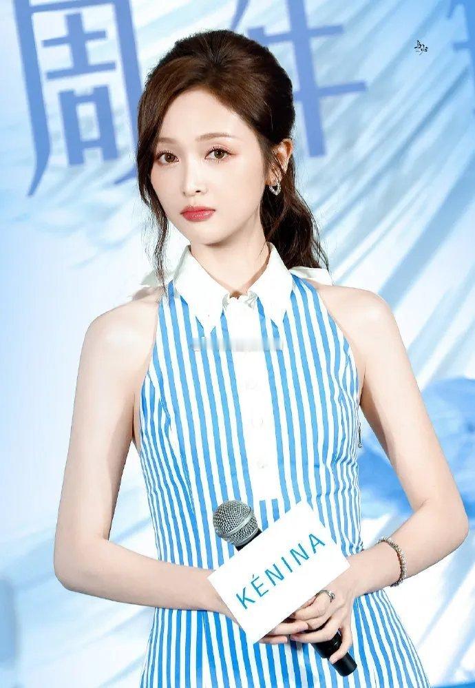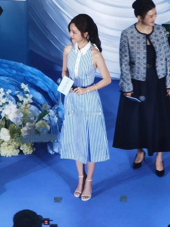吴宣仪在出席活动的时候穿了一件蓝色的条纹裙,看起来像个靓丽的美少女,感觉和出道的时候变了好多