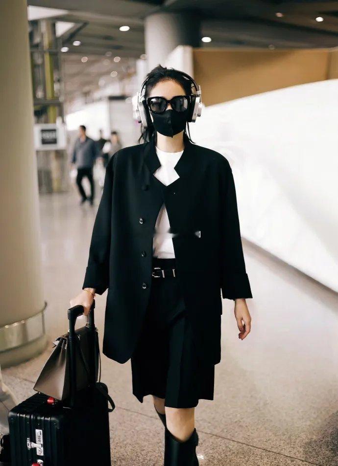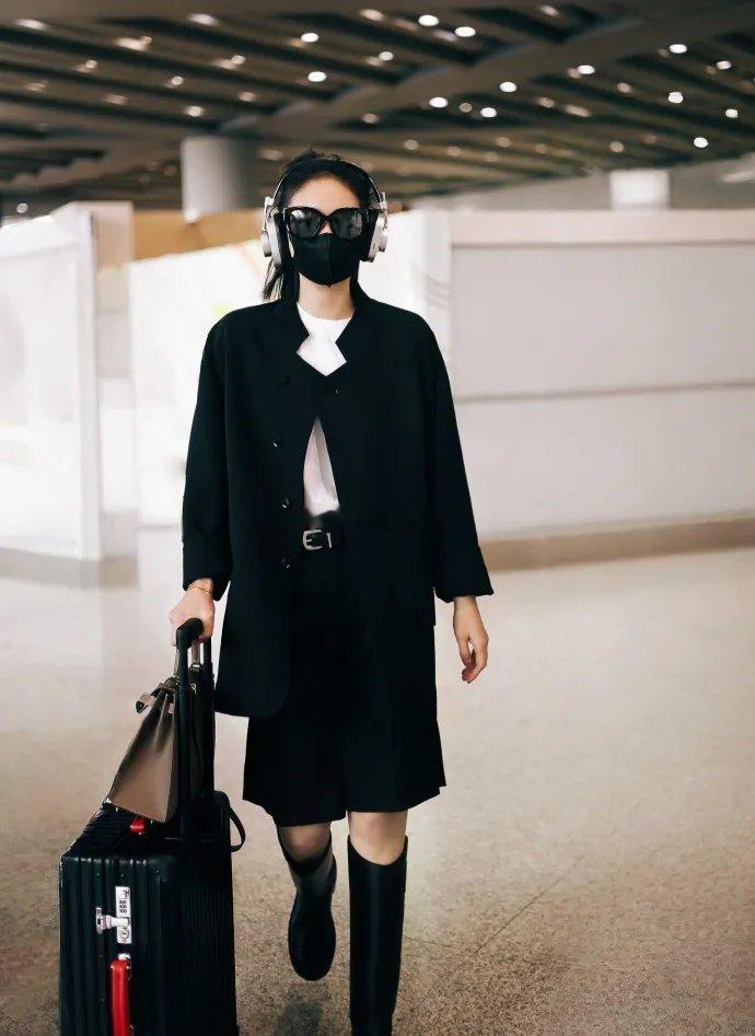 高叶现身机场,她这次穿了一身黑色的衣服,看起来好酷,也很有型。