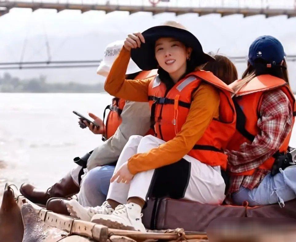 39岁李思思去了宁夏中卫人生第一次坐“羊皮筏子”游黄河,穿着救生衣,戴着遮阳帽激动的她一直朝镜头挥手打招呼,俏皮十足一点不显老!