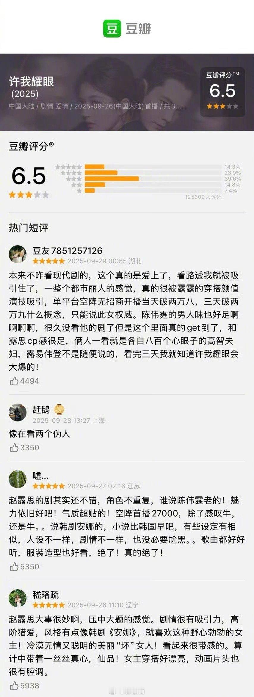 许我耀眼豆瓣开分6.5,大家觉得高了还是低了