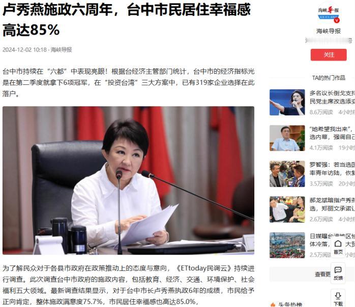这次国民党主席改选,最大的赢家已经出来了,哪怕未来两岸统一,这个人也有很大可能会是笑到最后的,甚至说待两岸统一后,在对台湾的治理上,她也有可能会被大陆重用。 这个人就是卢秀燕,光看她这次在党主席改选里的操作,就知道这女人的政治嗅觉比谁都灵。 看她8月宣布不参选的时机就懂,那会儿绿营正借823罢免案扎堆抹黑台中蓝委,王义川还放话要出“奥步”针对她,她愣是按住参选的呼声,等到罢免尘埃落定才公开态度,完美避开绿营的提前围剿。 要知道国民党主席位置看似风光,实则党部靠募款运转,还要扛下县市选举成败的责任,她偏不凑这个热闹,把“吃力不讨好”的位置让别人去争,自己守着台中这个“票仓”稳坐钓鱼台。 更妙的是她对候选人的态度,郑丽文上门拜访,她转头就让身边人辟谣“支持说”;张亚中找她吃小笼包诉苦衷,她只说“见面是党员义务”,半句不松口表态。 可转头郝龙斌在台中的座谈会上,她的核心子弟兵黄健豪、廖伟翔就亲自到场撑场,这姿态摆得极有讲究——不公开站队,却用实际行动给候选人递信号。 果不其然,郝龙斌立马放话支持她2028年参选,还赞成她“决战南台湾”的主张,等于主动把未来的话语权交了出去。这手“不参选却掌局”的操作,把党内派系玩得团团转,比亲自下场厮杀高明多了。 她的精明更藏在对选情的预判里。改选前谁都知道近20万军系票是关键,郑丽文早年靠痛批“民进党绑台湾当炮灰”拉到48%的军系支持率,眼看要稳赢,卢秀燕却没跟着押注。 果然,10月4日政见会上郑丽文称赞极右翼的高市早苗,39位退役将领隔天就紧急开会叫停对她的支持,4小时内12个军系联络点的海报全撤了,军系支持率直接从48%跌到21%。 这时候大家才后知后觉,卢秀燕早看透郑丽文立场不稳,没把宝押在她身上,躲过了这场政治翻车。 能被大陆看重,光会玩政治还不够,卢秀燕在台中的治理成绩才是硬底气。她执政6年,台中市民居住幸福感飙到85%,施政满意度75.7%,这数据在“六都”里相当能打。 教育领域更亮眼,“陪你长大计划”换可调式课桌椅,85.7%市民认可;“老旧校舍改建”满意度高达87.9%,把民生工程做成了加分项。 经济上更不含糊,“投资台湾”方案里319家企业落户台中,招商总额突破2万亿元新台币,连续14季度在8项商业登记指标里拿4项以上冠军,实打实的政绩摆在那,谁都没法否认她的治理能力。 两岸议题上,她更是踩得准节奏。早在2019年就明确说“九二共识是两岸稳定基础”,赴香港签合作协议时直言“放下政治拼经济是活路”,不搞虚头巴脑的表态。 2024年直接接待上海—台中双城论坛先遣团,还提出“台中—厦门一日生活圈”试点,2023年率团赴东南亚招商签回26亿美元,用实际行动推进两岸及对外经贸,比那些只会喊口号的政客靠谱多了。 她从不刻意标榜“统派”,却把“和平交流”落实到具体项目里,这种务实作风恰恰是大陆最认可的。 国民党内部多少人盯着主席位置打破头,郑丽文丢了军票悔不当初,郝龙斌忙着巩固优势,只有卢秀燕隔岸观火还攒足了资本。 台中这个基本盘被她守得固若金汤,党内各派都要卖她面子,两岸议题上又没留下话柄,政绩数据更是拿得出手。 未来两岸统一后,治理台湾需要懂本地情况、有治理经验还认同两岸和平的人,卢秀燕这几步棋走下来,早就把自己的位置铺垫好了。她哪是没参选,分明是把舞台让给别人唱戏,自己悄悄成了台下握着重磅筹码的观众。