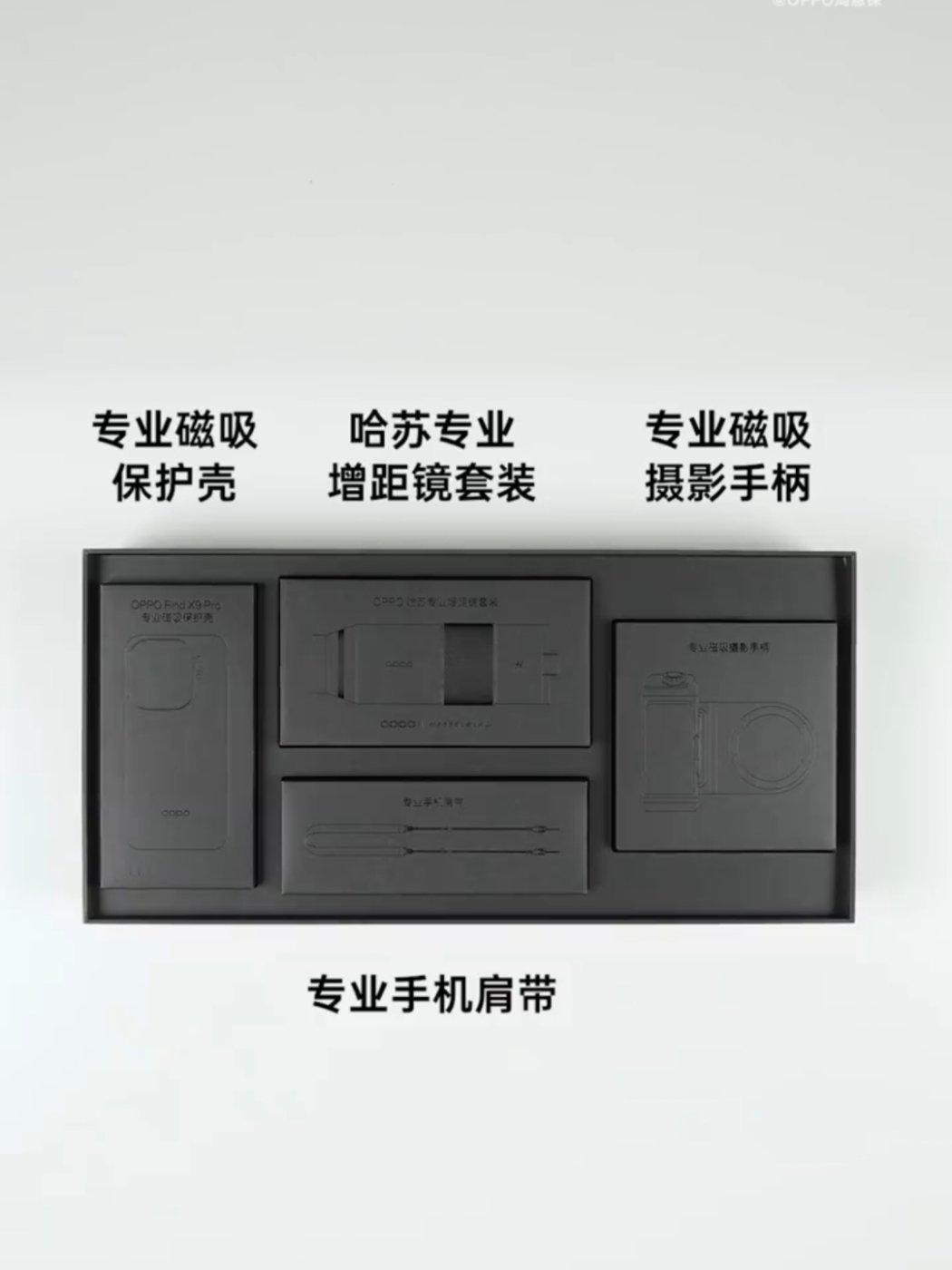 哇擦嘞!OPPO 的增距镜也来了,这次OPPO Find X9 Pro 也安排上来了影像套装,套装内包含芳纶纤维材质的磁吸保护壳、哈苏增距镜套装、磁吸摄影手柄、哈苏手机肩带。