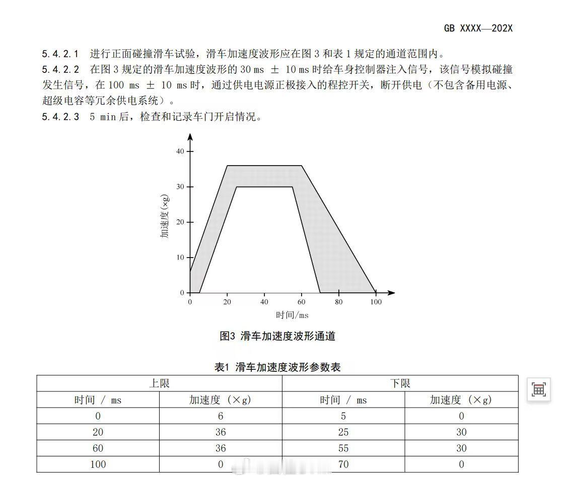 举例来说吧,最新的车门把手国标,是有明确门把手的振动冲击加速度。现在这份标准的加速度峰值g值,是在30g-36g区间,这个g值还不算特别大。我估计新国标这个g值是考虑到了C-NCAP的50km/h正碰来的,C-NCAP 50 km/h 正面碰撞中,车内假人加速度值通常在 20g–40g 区间。