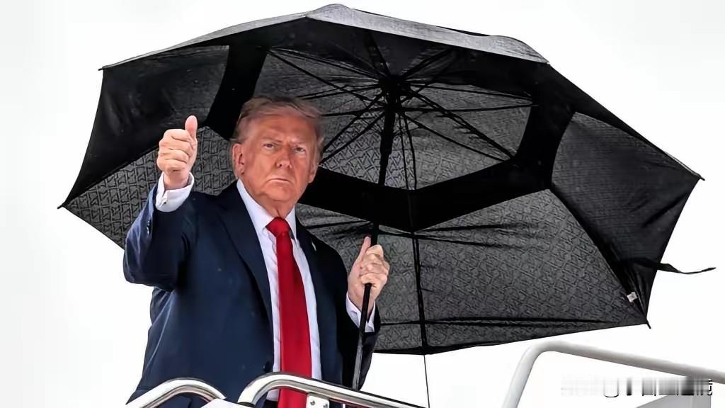 特朗普的是不是撑了个破伞?——一个伞角皱皱巴巴没撑开。