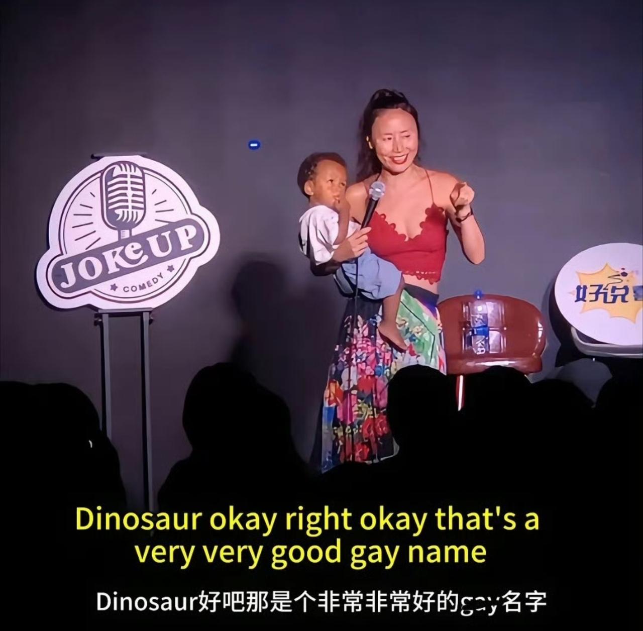 如今脱口秀女演员也是够拼的,上台讲节目都要带孩子了吗? 并且我如果没看错的话,她