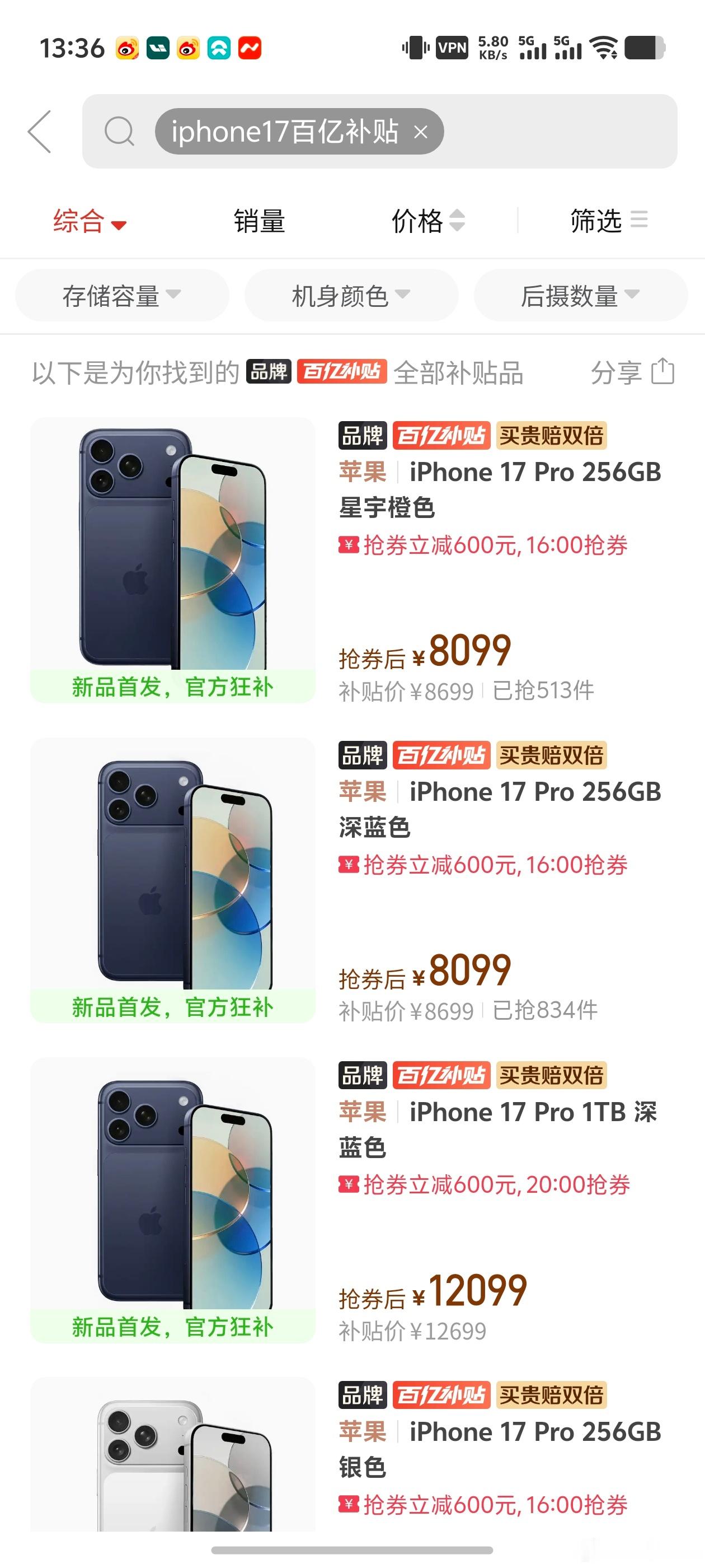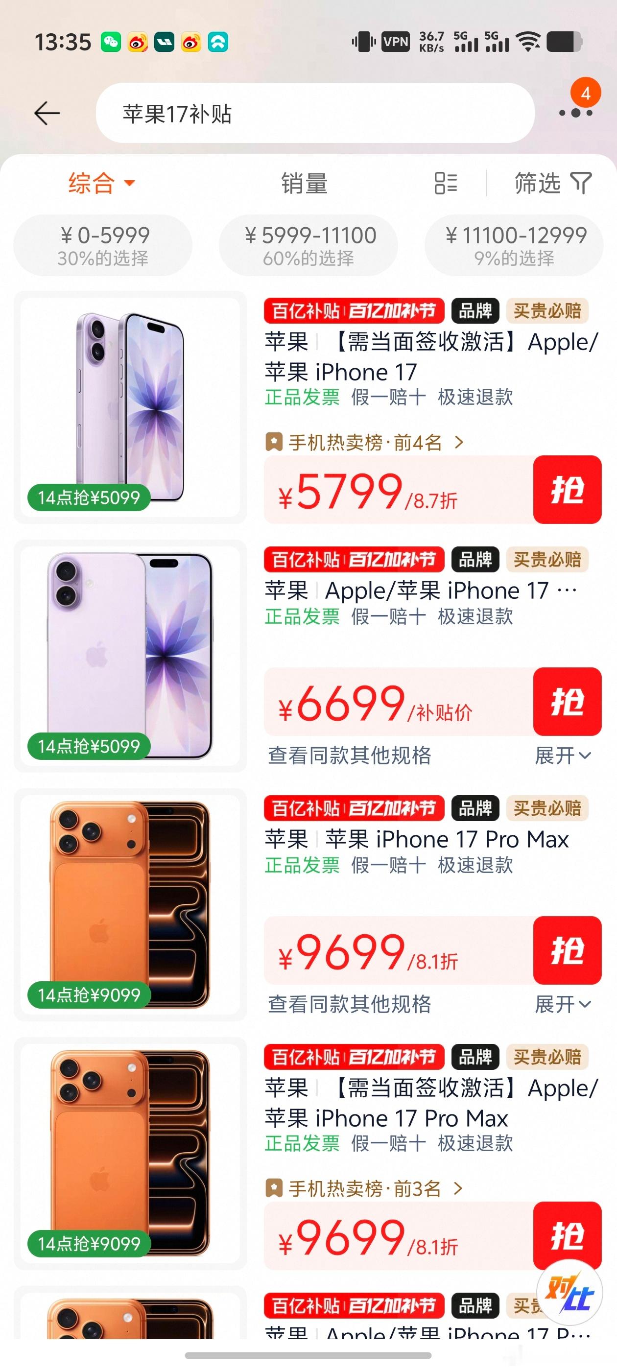 不懂就问,现在哪能买到百亿补贴的的 512 的 iPhone 17 啊?