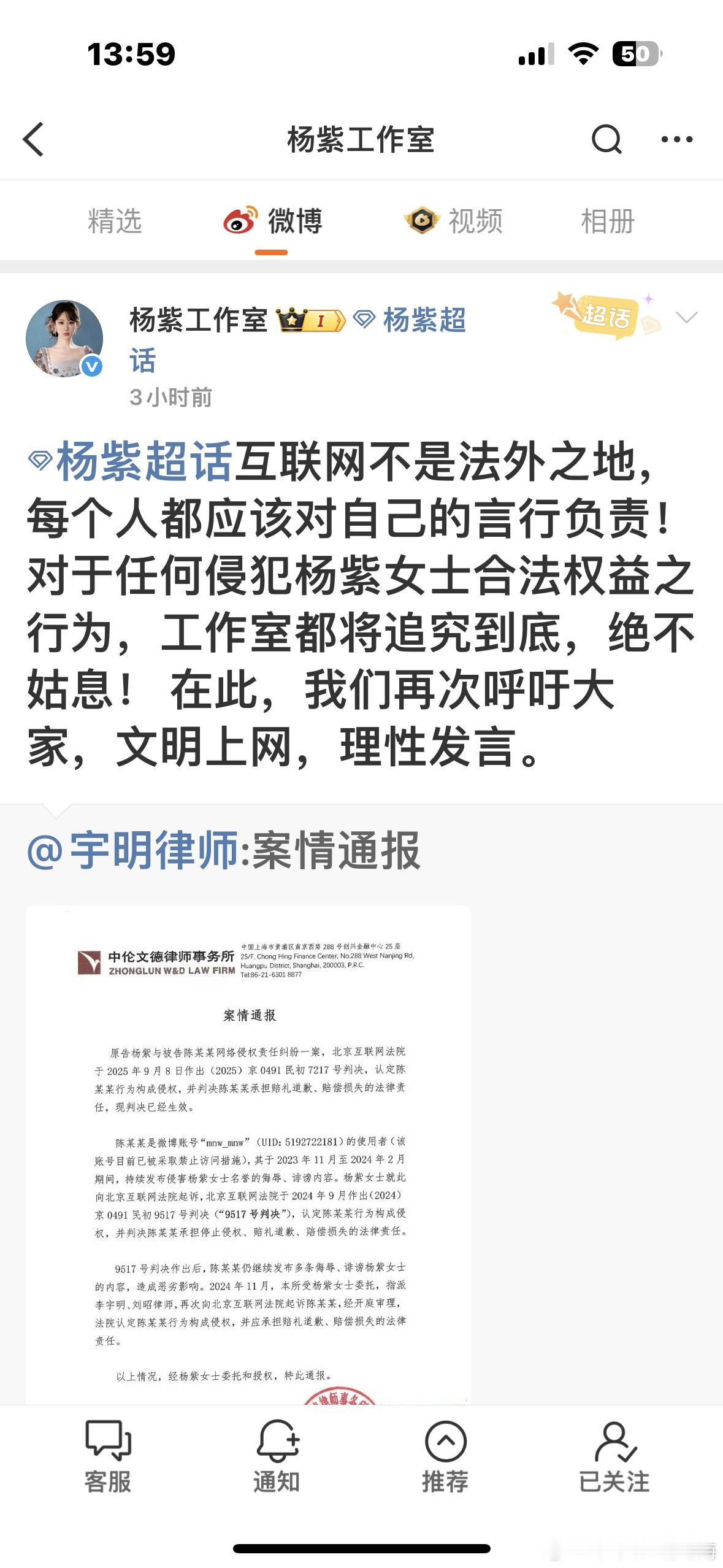 杨紫工作室呼吁理性发言维权虽然不易,但是正义永远都在!