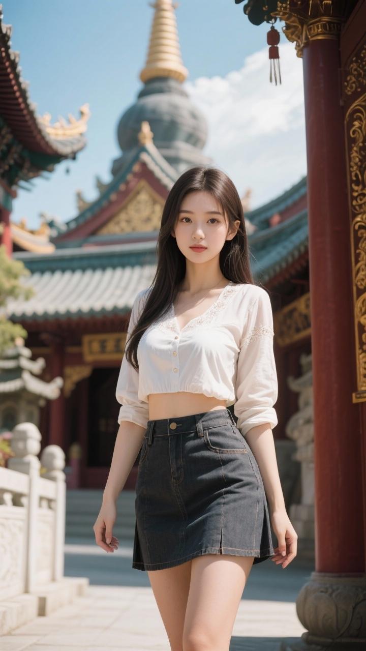 “别人都能进,凭什么我不能进?” 一位穿着蕾丝吊带、超短裙的年轻女子站在寺庙