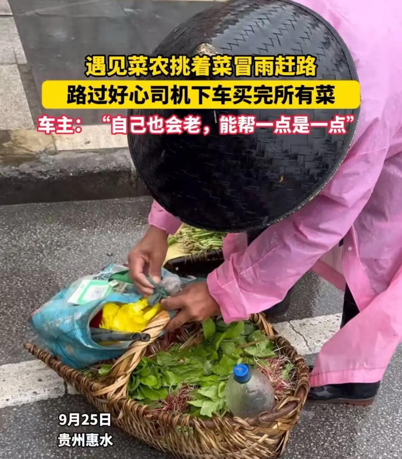 看哭了!贵州惠水,女司机遇见菜农挑着菜冒雨赶路,走路还一瘸一拐,一口气买下菜农所有的菜!女司机:“我自己也会老,能帮一点是一点!”网友:往后老人一定会一遍又一遍地说起那个雨天,有辆车上走下来一位善良的女士! 这是一幕普通却温暖人心的画面,却在无声中折射出人性最美的一面。在这个快节奏、功利至上的社会,或许我们早已习惯了冷漠与算计,但正是这些细微的善意,让我们看到了希望的光芒。那位女司机,也许只是生活中的一名普通人,但她用行动告诉我们:善良从不缺席,只要愿意伸出手,就能点亮一片天。 或许有人会问,这样的善举真的能改变什么?但我想说,善意的力量远比我们想象中更大。它像涓涓细流,汇聚成江海,滋养着每一个需要温暖的心灵。那位菜农或许只是想把菜卖出去,换点生活的微薄收入,但遇到这样一位善良的女士,无疑是他一整天最温暖的慰藉。 更令人感动的是,这个故事背后折射出的人性光辉:我们每个人都在自己的岗位上努力着,有不同的人生,有不同的境界。赠人玫瑰,手有余香。