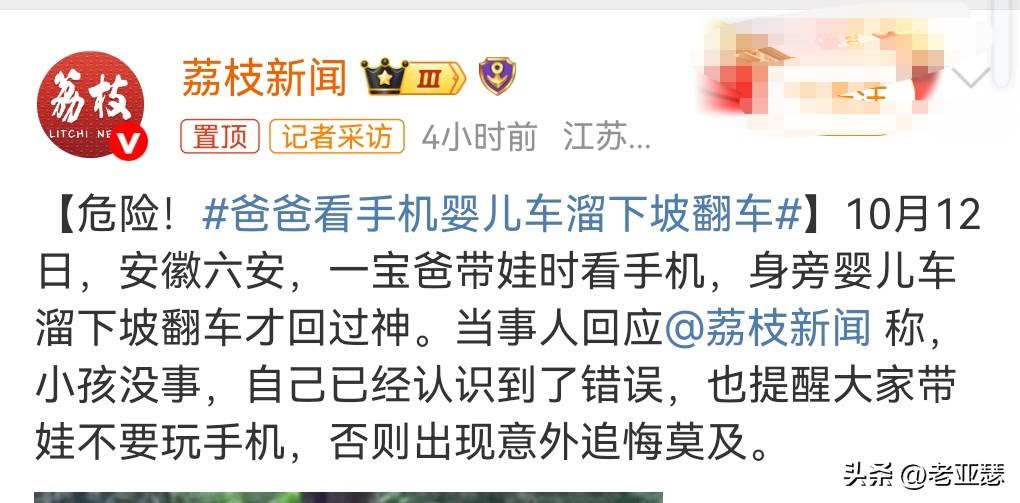 这真是敲响了警钟啊!幸亏没有酿成大祸。 10月12日,一男子带娃,玩起了手机,没
