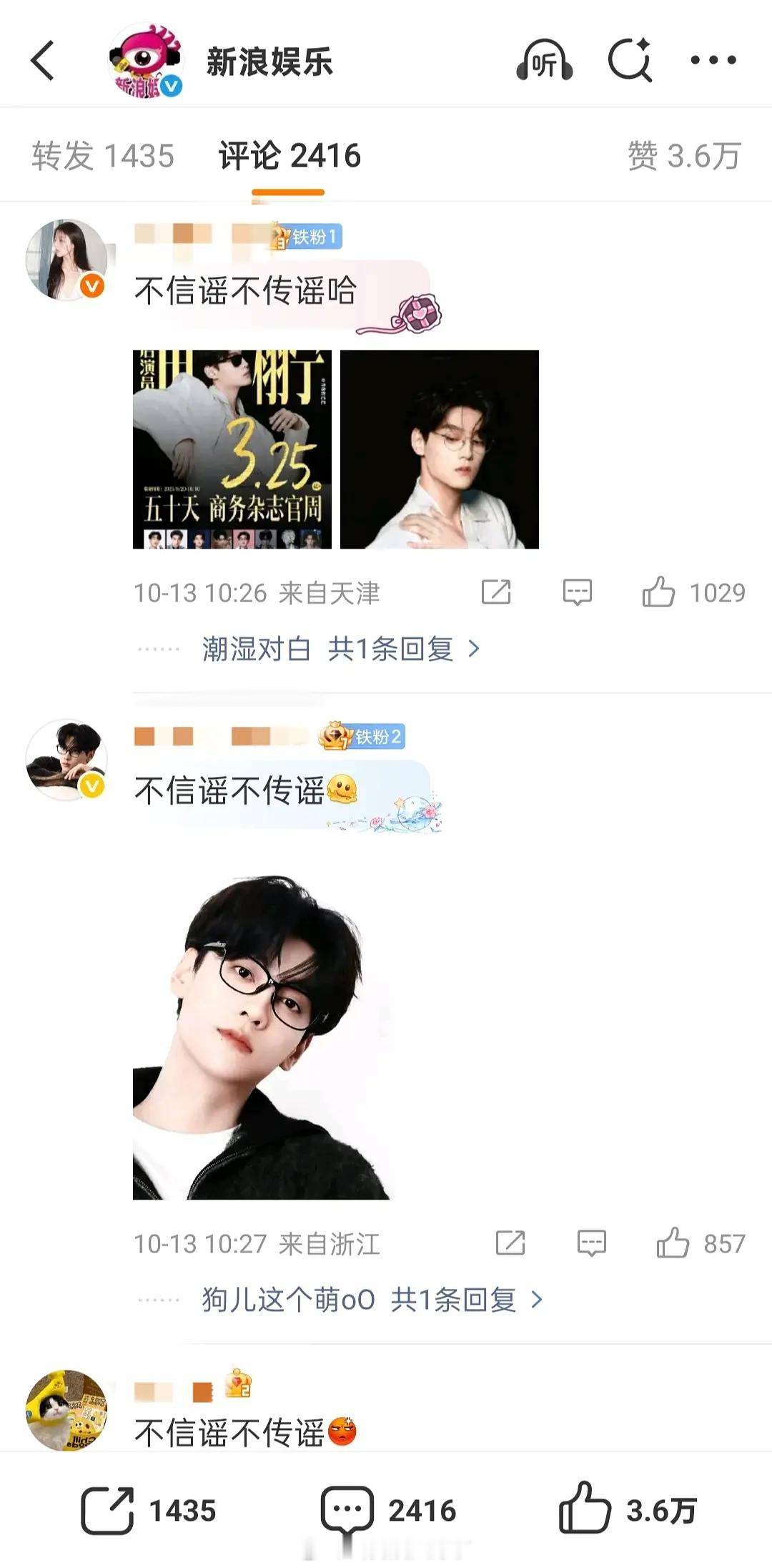 粉丝在牵手视频下面说不信谣不传谣。