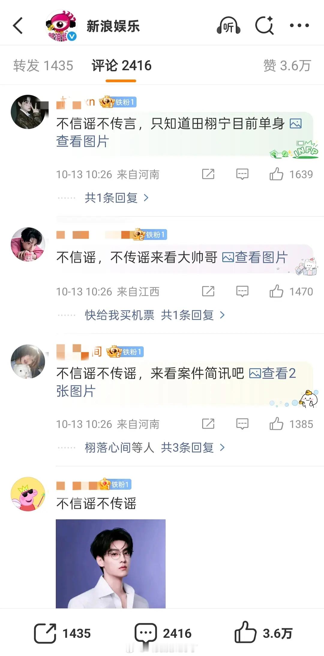 粉丝在牵手视频下面说不信谣不传谣。田栩宁曾明确自己单身