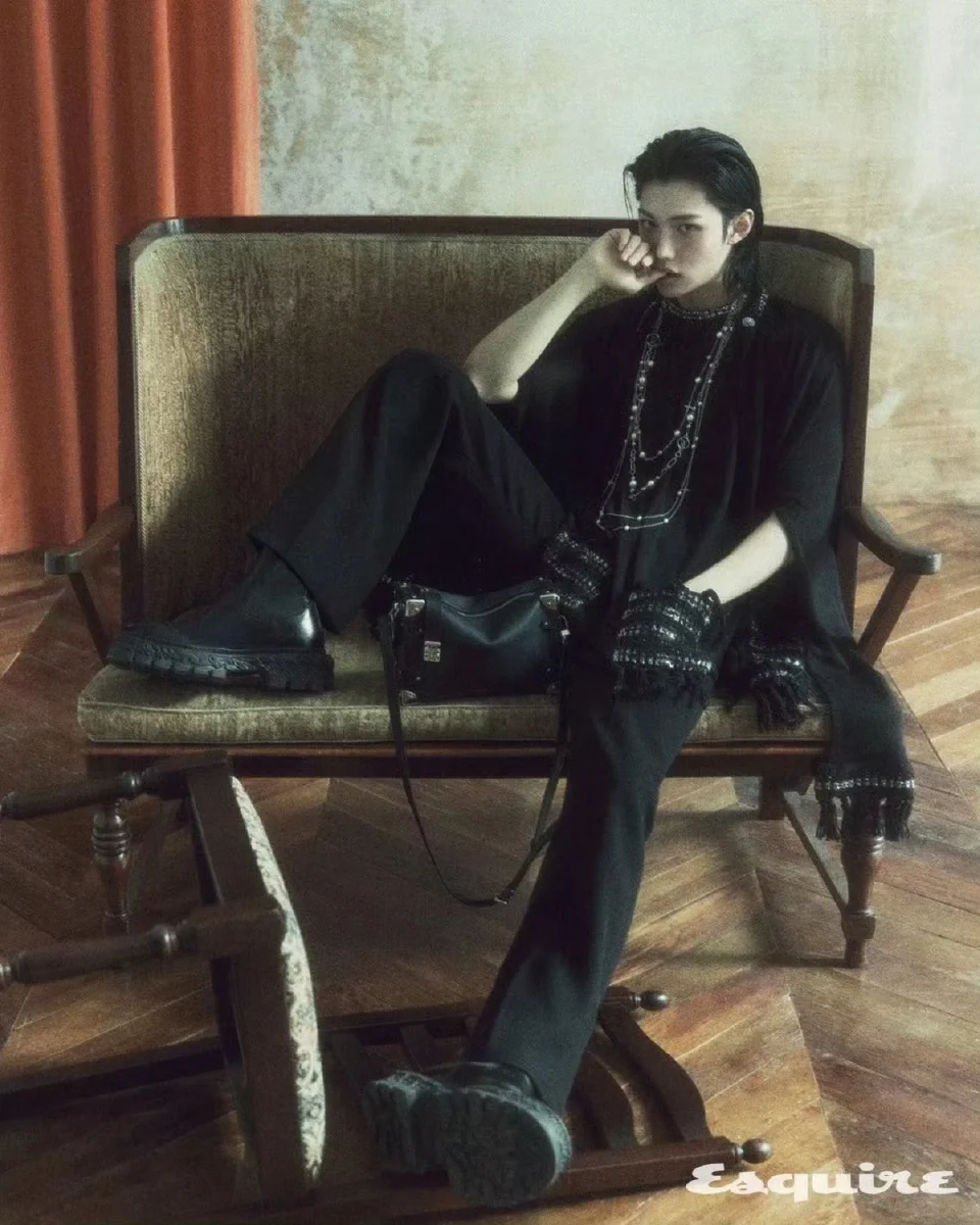 暗调流苏混着金属链条,尽显慵懒贵气。亮面外套碰撞山水油画,营造古典氛围,花呢外套再配以搭透视内搭展现暗调松弛到复古张力,李龙馥把“暗黑系复古”的每寸细节精准把握,以自己的姿态解构风格。#时尚大片 #时尚表现力 #杂志封面 #时尚写真 #李龙馥#felix #艺人拍摄 #时尚拍摄#摄影创作 #男爱豆