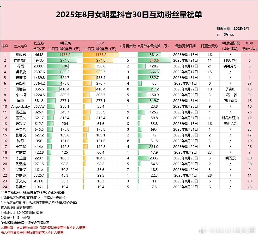 赵露思抖🎵近30日互动粉丝2153万🤯剧爆人爆实感🈶