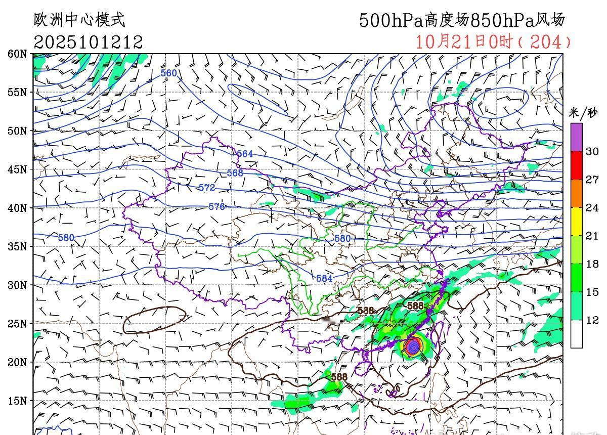 【台风展望】目前数值预报给出本周后期,在菲律宾以东的西北太平洋上可能形成新的台风。之后靠近台湾岛。下周初临近台湾时,路径极其难报。由于东西两侧均有高压系统,形成鞍型场,北侧还有强冷空气压制,使得台风完全不知道该往哪儿走。图1-3为中欧美三家数值预报给出的10月21日形势场。