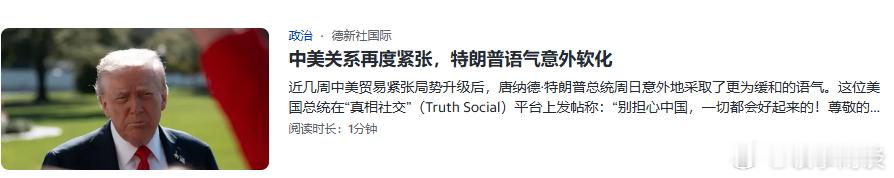 美国总统在“真相社交”平台上发帖称:“别担心中国,一切都会好起来的!”