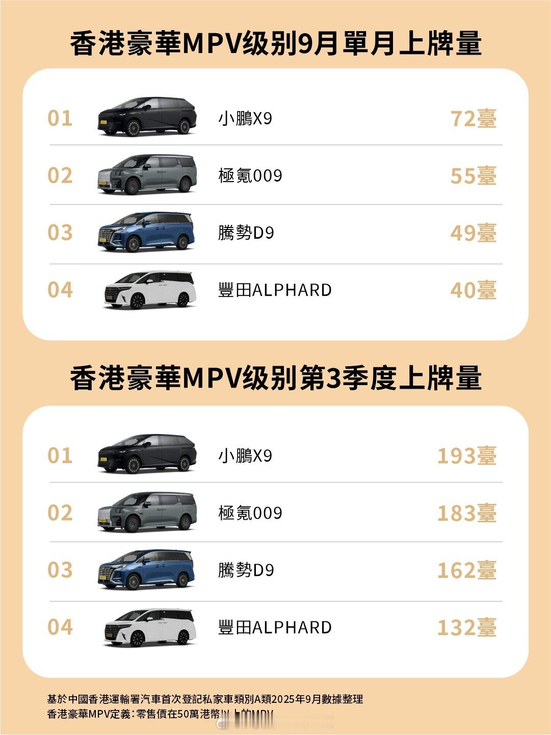 再一次超越埃尔法,直接登顶香港9月豪华MPV销量榜首🔥