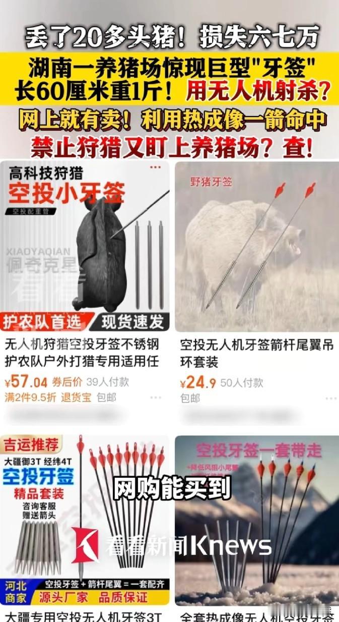 湖南一养殖场被人用无人机空投大型箭矢,射杀20多头猪。 根据看看新闻报道,湖南有