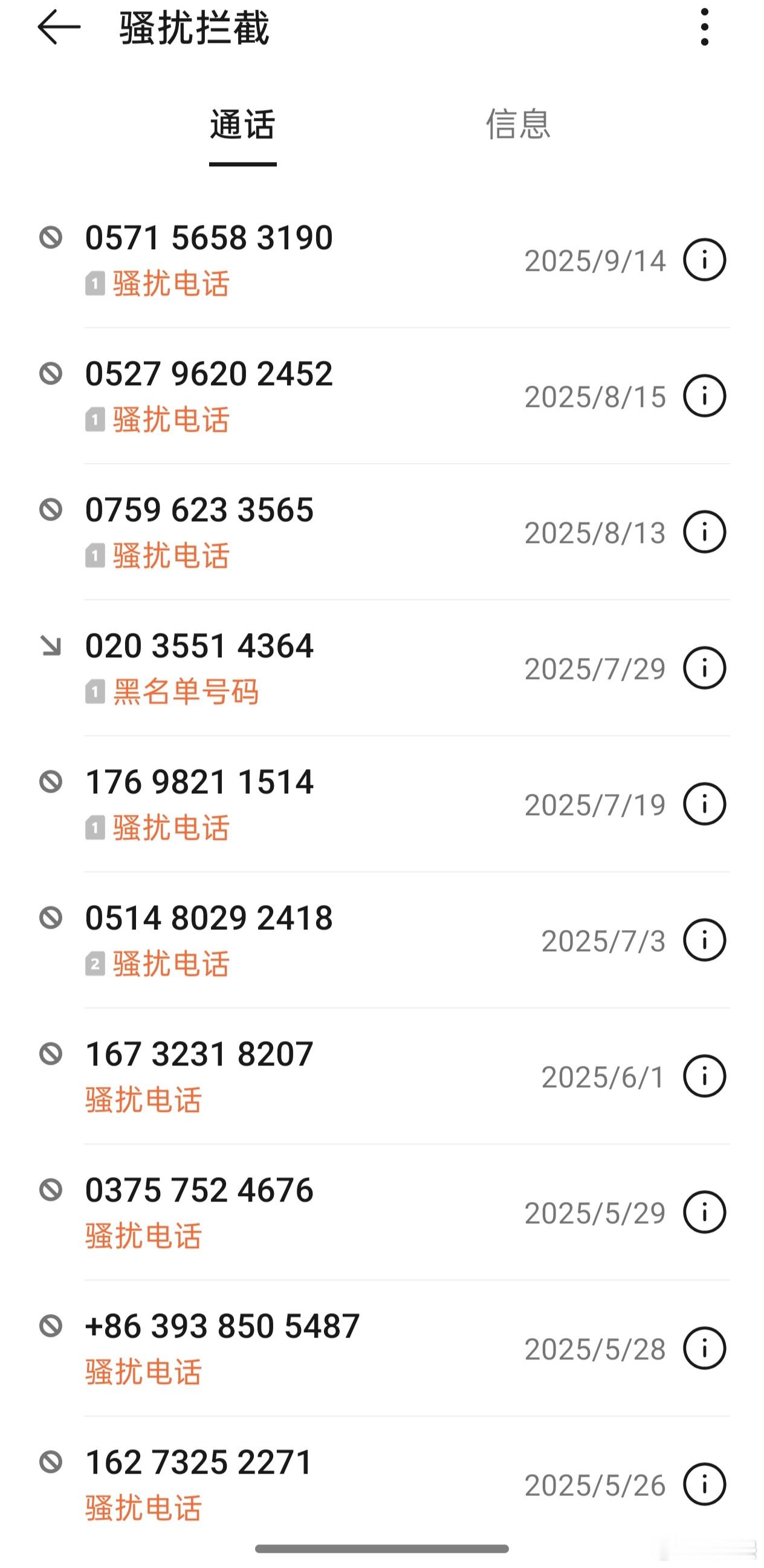 而且有一说一,安卓机的骚扰拦截功能是真好用,很大一部分都被拦截了(图二)