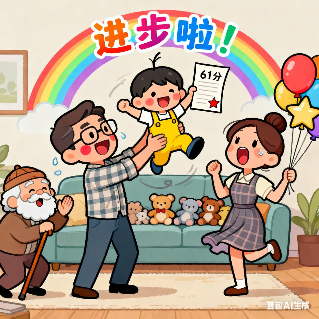 10月11日,安徽亳州一个孩子考61分全家欢呼的视频火了。孩子母亲报喜后,父亲激动起身,大喊给爷爷奶奶报喜,高呼“光宗耀祖”,还决定带孩子下馆子。这位父亲是有十年经验的医生,因见多生死离别,对孩子成长有不一样感悟,只希望孩子健康快乐,成绩尽力就好。 多数网友称赞他的鼓励式教育,认为能提升孩子自信、缓解焦虑。有网友调侃考100分要摆宴席。当然,也有家长不理解。但每个孩子情况不同,基础薄弱的孩子,微小进步也值得鼓励。