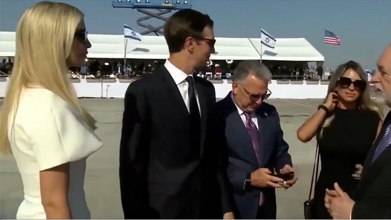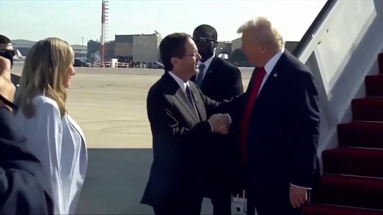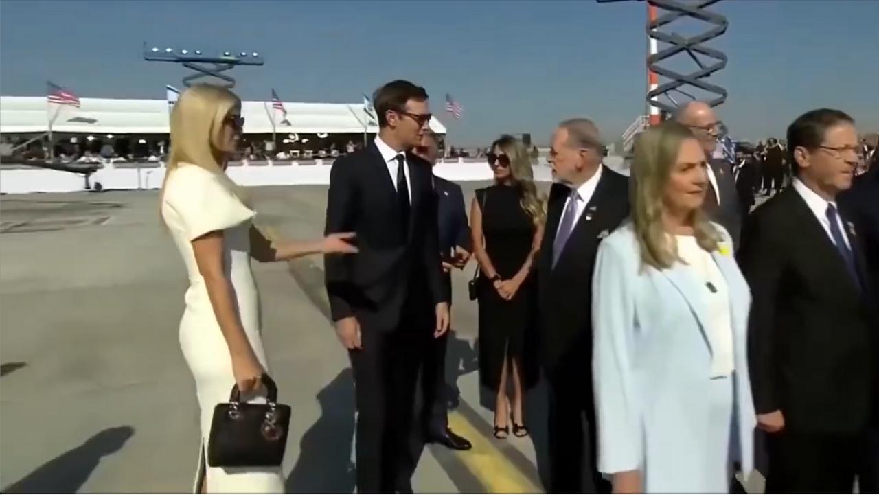 特朗普抵达以色列特拉维夫本古里安机场,以色列总理内塔尼亚胡、以色列总统赫尔佐格、库什纳、伊万卡等人到机场迎接。