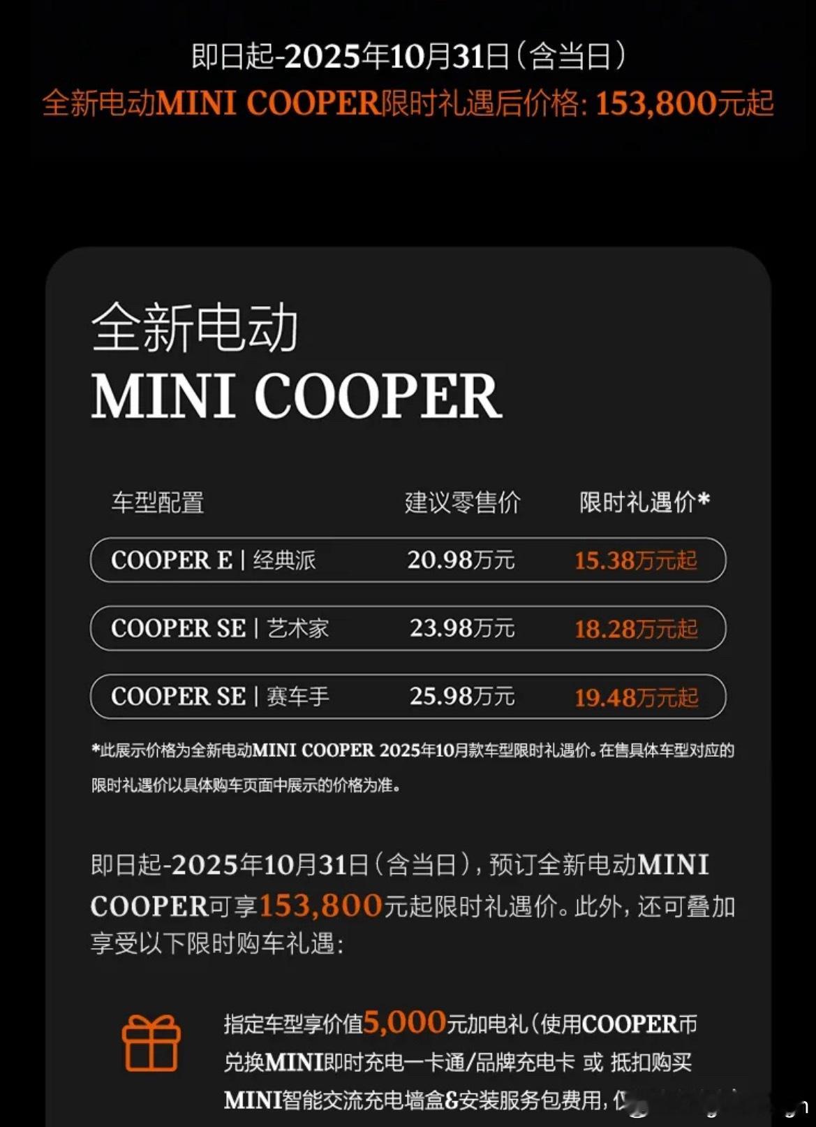 电动Mini涨价了,入门版从14.88涨到了15.38万。