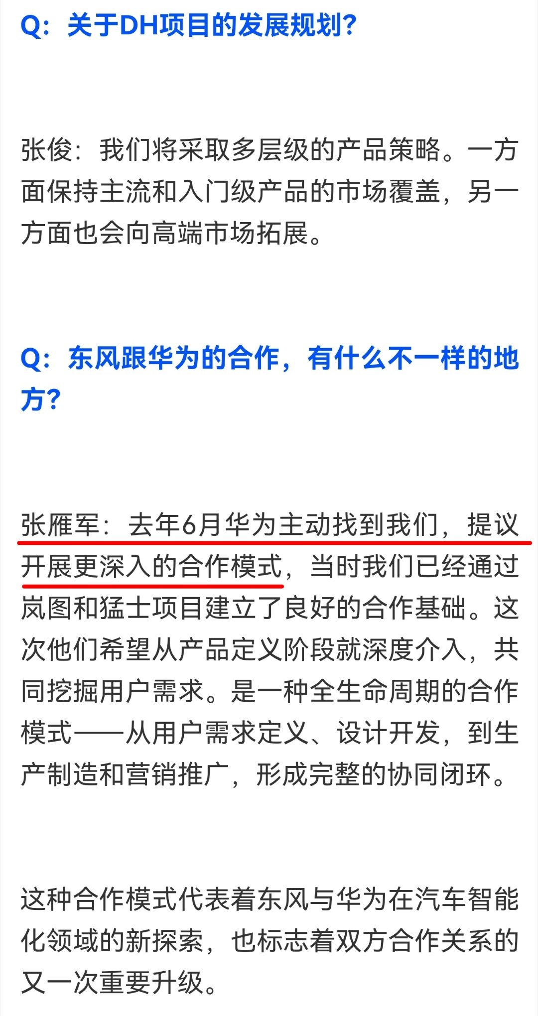 东风奕派张雁军透露:Hi模式的升级是华为主动提出来了。