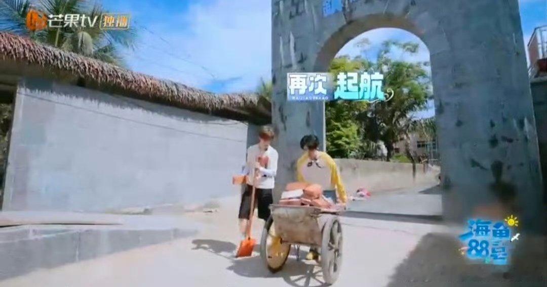 颜安余宇涵抽象派搬砖 这哪是搬砖,明明是抽象艺术现场!砖块晃来晃去全凭信念,俩人的反应比搬砖本身还搞笑。