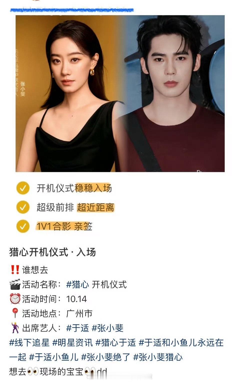 🍉张小斐和于适的《猎心》明天开机,张小斐已经出发了