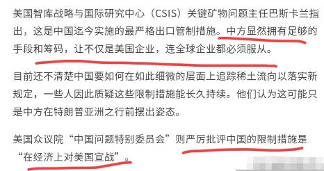 在我们实施西方世界口中所谓迄今为止最严格出口管制措施之后,一个非常让人感到诡异的事情发生了。其一是,美国方面虽然非常的愤怒,但是美国竟然没有宣布任何立刻生效的反制措施,特朗普还表示愿意跟我们谈,这太不同寻常。其二是,除了美国公开表示没有实质性反制措施的不满外,那些西方国家现在竟然都一声不吭。 这一次,西方世界的反应不是谴责我们,而是声称评估中国管制政策所产生的影响。欧洲不说话,日本,韩国现在也都不说话。世界如此安静,这太反常了。 对于这一项管制,美国智库战略与国际研究中心的专家的观点是,中方显然拥有足够的手段和筹码,让不仅是美国企业,连全球企业都必须服从。 这次出台的出口管制可不是小打小闹,直接把稀土相关物项和技术的管控拉到了新高度,不光管原产于中国的材料,连含有0.1%以上中国重稀土成分的外国产品,或者用了中国技术在境外生产的物项,出口前都得拿中国的许可,甚至连稀土开采、冶炼的技术和生产线维护都被纳入了管制清单,这等于掐住了全球高端制造的“命门”。 美国那边喊着愤怒却按兵不动,说白了就是没底气立刻反制。美国地质调查局的数据摆着呢,2024年他们83.7%的稀土供应直接或间接来自中国,50种关键矿产里12种完全依赖进口,29种进口依赖度超50%。 更要命的是镓这种关键材料,全球98%的低纯度镓产能都在中国手里,美国国防部超1.1万个组件离不开镓,涉镓国防供应链近85%都有中国供应商。 之前中国刚对镓实施管制,鹿特丹的镓价一个月就涨了43%,到2025年更是比管制前暴涨150%,境外价格快是国内的两倍。 美国企业早就慌了神,格芯缺了中国的镓,氮化镓生产线差点停摆,只能回头找中国代工厂合作;AI企业更头疼,高性能稀土磁铁的专利90%在中国,自己的稀土产能才占全球3%,短期根本补不上缺口。 特朗普说愿意谈再正常不过,真要是立刻反制,先扛不住的是美国军工和高科技企业,CSIS的专家看得明白,中国这是在谈判桌上又放了批新棋子,美国根本没多少反击空间。 欧洲的沉默更像是“敢怒不敢言”,毕竟他们对中国的依赖比美国还深。有数据说,欧盟几乎100%的稀土都从中国进口,德国博世、舍弗勒这些企业早就因为原材料不足遭遇过生产中断,中国欧盟商会的140份出口许可证申请,获批的还不到四分之一。 荷兰阿斯麦的处境最能说明问题,这家被美国当枪使的光刻机巨头,现在才发现自己的命门捏在中国手里——光刻机里的铷铁硼永磁体、铥基光源、铽制光学隔离器,全得用中国稀土。中方新规一出,阿斯麦立马开始准备延迟交货,甚至游说盟友找替代方案,可哪有那么容易? 2024年中国还占着它49%的收入,丢了中国市场再没了稀土供应,营收利润都得崩。德国经济部只能嘴上说“极度担忧”,可真要谴责或反制,先倒闭的得是自家的汽车和半导体企业,这种亏本买卖没人愿意做。 日韩的沉默则是算清了自家账本后的理性选择。韩国工业部门只能含糊其辞说“正在评估细节”,因为三星、SK海力士的5G芯片和存储芯片离不开中国的镓基材料,一旦断供,生产线就得停摆,而韩国自己根本没有替代来源。 日本信越化学这些半导体材料企业也一样,多年来依赖中国的稀土加工技术,中国现在连技术出口都管起来了,他们就算想建替代产能,没个十年八年根本没戏。 之前美国拉着日韩搞半导体围堵,他们还跟着凑数,现在才明白中国手里的筹码有多硬,真要是跟着美国谴责,最先被砸的是自己的饭碗,与其发声不如悄悄评估怎么申请中国的出口许可,这才是最实际的。 CSIS的专家说得一点没错,中国确实有足够的手段让全球企业服从。从2023年管控镓锗,到2024年禁运锑和超硬材料,再到2025年把钨、碲等纳入清单,中国一步步建好了全产业链的管制体系。 更关键的是中国掌握着核心环节,全球90%的稀土分离加工、93%的稀土磁体制造都在中国,就算澳大利亚、加拿大的矿山能挖出稀土原矿,没有中国的技术也炼不出能用的材料,这些国家的在建项目全完工,到2030年也只能满足西方国家40%的需求。现在那些喊着“去中国化”的企业,最后都得回头求着中国给许可证,毕竟生意要做,生产线不能停。 西方世界这次算是彻底明白,之前的围堵就像双刃剑,现在刀刃终于砍到了自己身上,这种时候再咋咋呼呼谴责,不如先算算损失有多大,这就是他们集体沉默的真相。