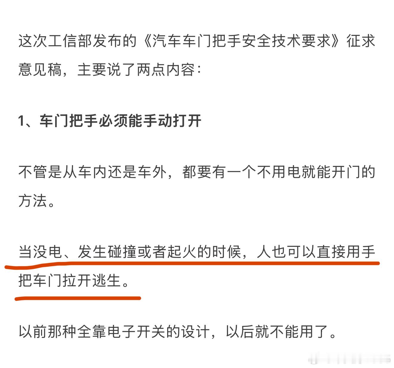 工信部也说了,碰撞起火车门把手得能拉开逃生。