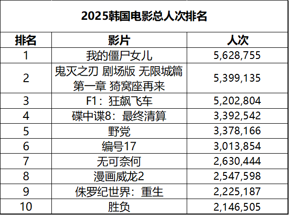 3.《鬼灭之刃 剧场版 无限城篇 第一章 猗窝座再来》累计人次539万,排名年度第2;