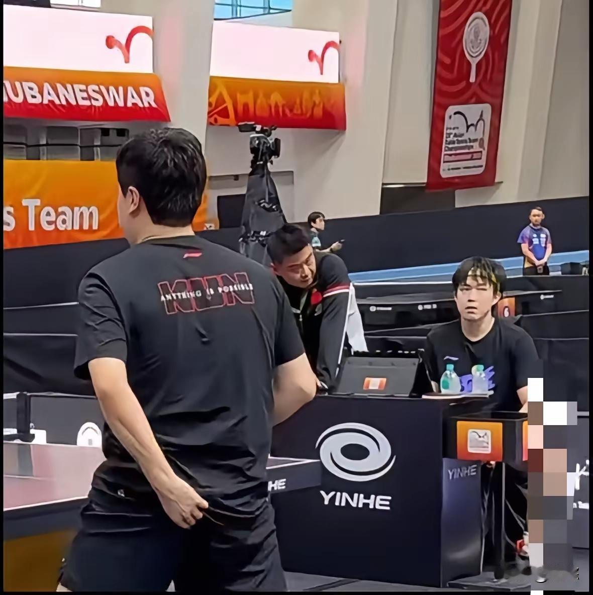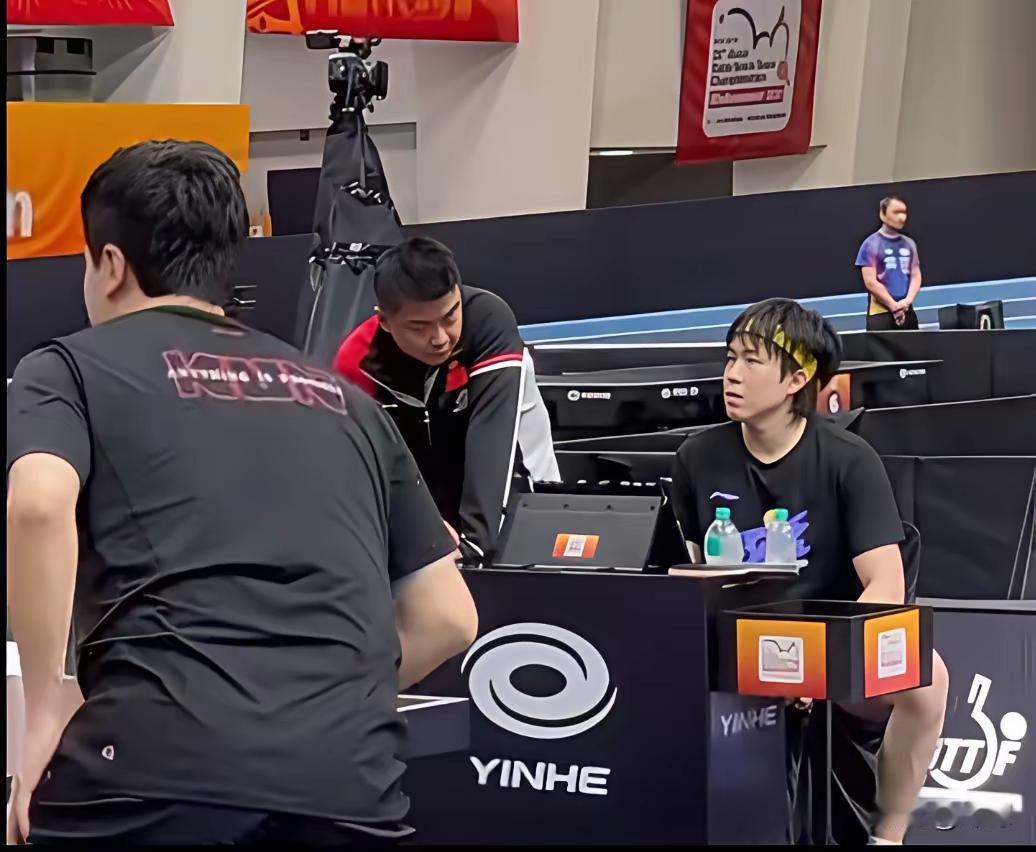 王皓给头哥进行“满堂贯”教学![捂脸] 国乒男团的首秀马上就要开始了,头哥专注地