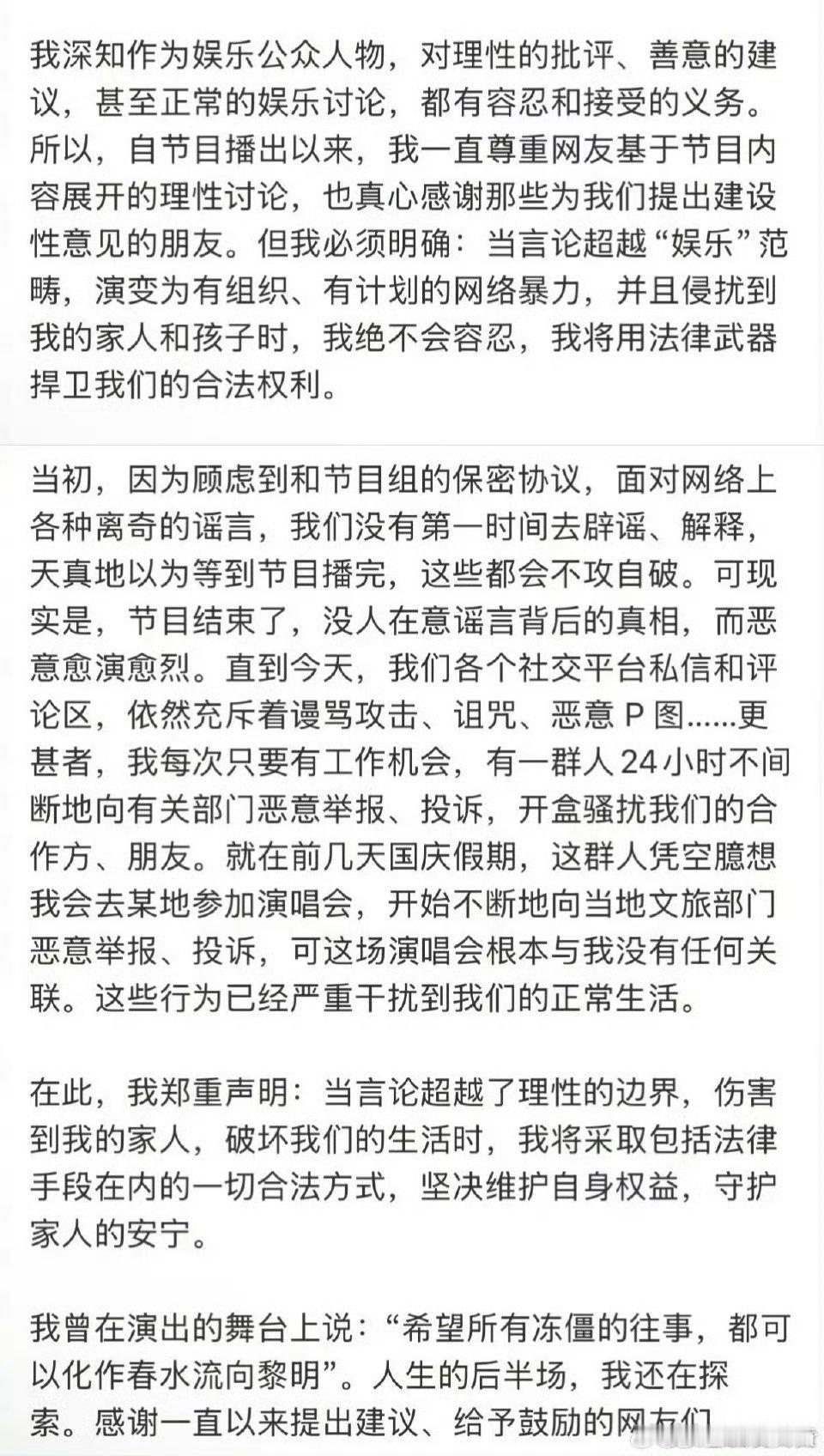 李行亮称因再见爱人深陷网暴李行亮称网友影响到他的生活李行亮发微博长文维权真的很反感躲在屏幕后的网暴者,凭什么对李行亮恶语相向?支持他用法律手段保护自己,维护生活安宁。
