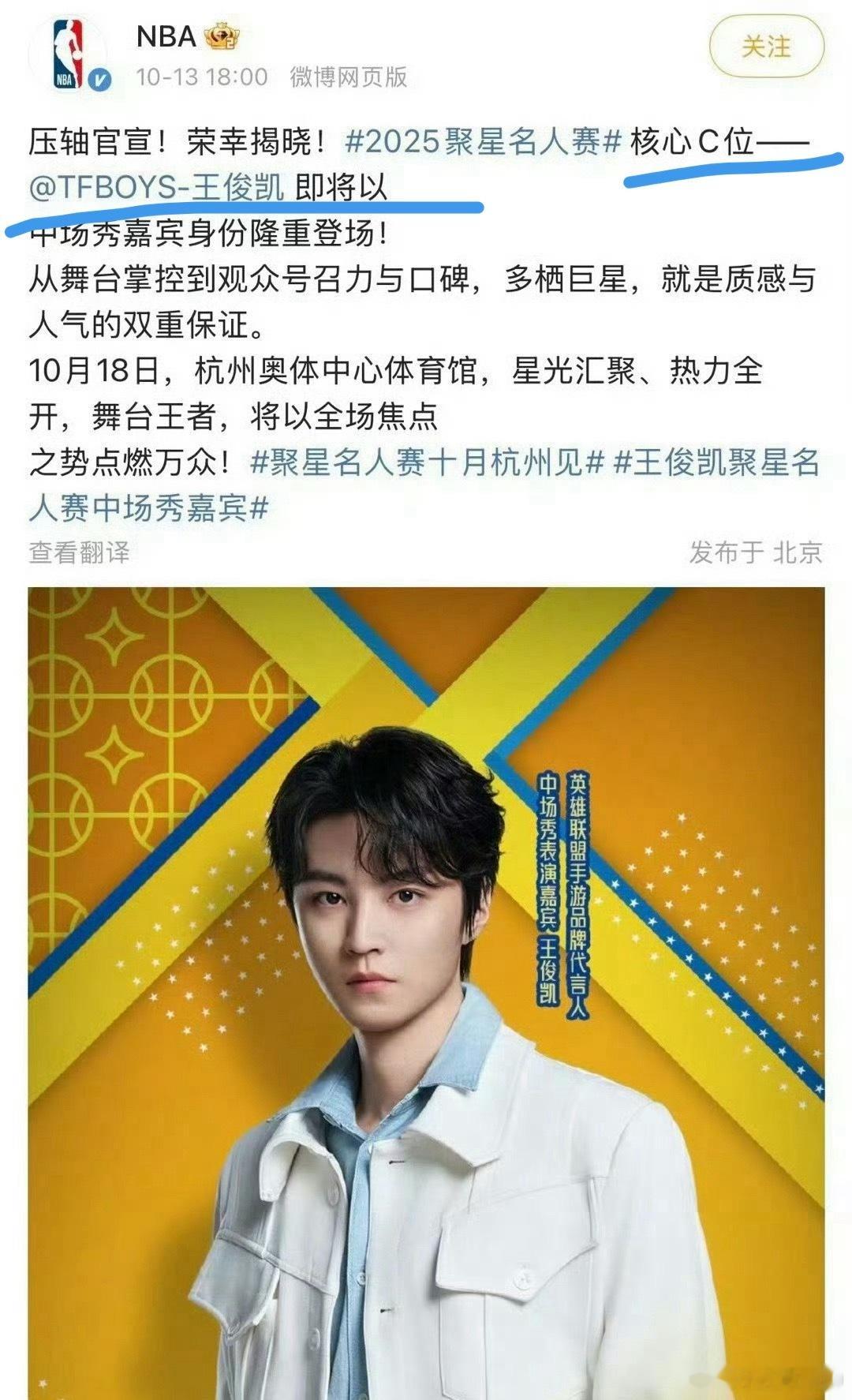 NBA聚星名人赛C位争议后续,在停止退票后,NBA官方认证王俊凯是核心C位 ……[疑问]