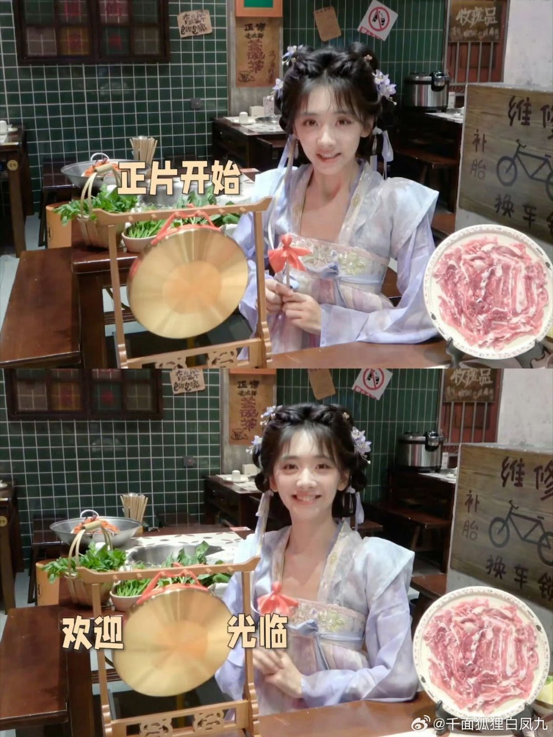 误入王影璐新菜发布会现场写真片场误入“新菜发布会”!她敲锣迎宾荐新品,一本正经