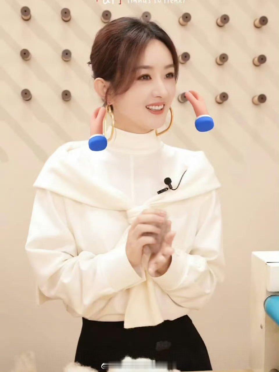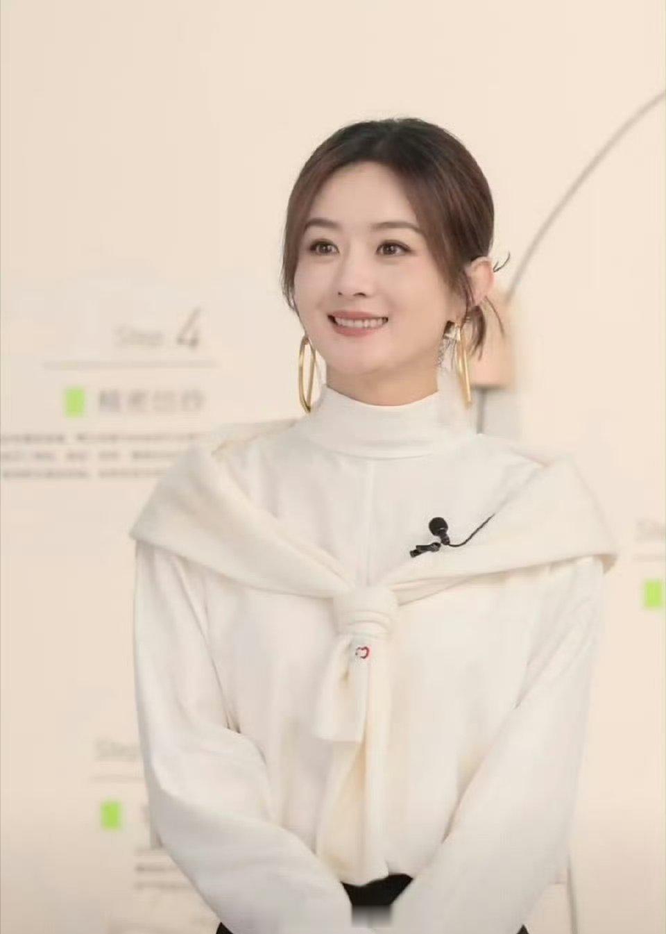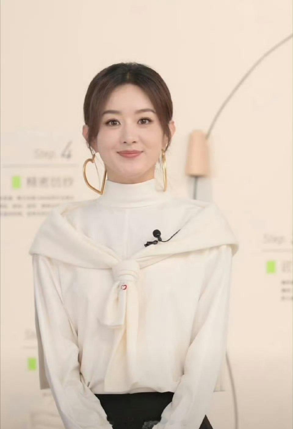 赵丽颖今晚直播🈶,金色超大心形耳环配白色毛衣,这个造型打几分?