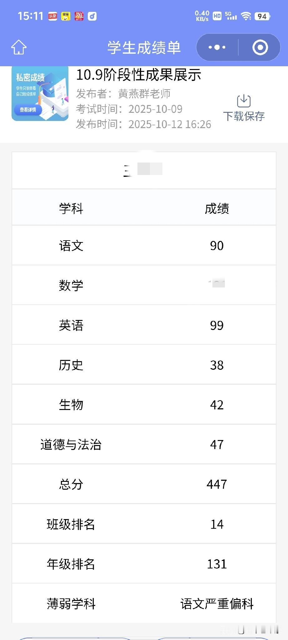 第一次月考成绩出炉, 初一的家长会不会崩溃? 升入初中,一切都变得向成绩看!其他的都是白扯!就看每月一次的考试就知道学校有多重视! 现在初中都可以利用技术手段发布月考成绩了!利用私密技术只能看到自己的成绩和排名,还能看到成绩的分析和趋势,不得不佩服! 看看自己孩子升入初中以后,各种的不适应,我们之间也是各种的情绪爆发!最明显的就是写作量急剧上升!原来要求400字的作文现在要求万达到600字!我孩子就是语文老师作文没写完,导致语文只得了90(满分150)。 这样的成绩说实话真的不满意,对不起自己的付出,每天作业写到10点多,每个周末也没🈶太多自由的时间,所以就有点崩溃,你说你不适应,大家都一样!初中生月考 七年级月考