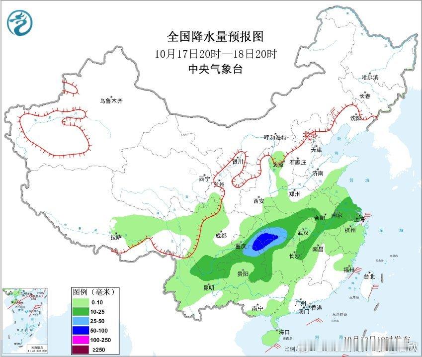 【降水】昨晚到今天,降雨总体向东南转移,重庆-湖北西部一带雨势最强,湖北的宣恩和建始,均出现观测史最晚的大暴雨,并打破当地10月单日降水量纪录。另外随着底层冷空气向南渗透,在江南和华南北部也激发出一些对流,华南南部因为暖区对流也导致降雨。