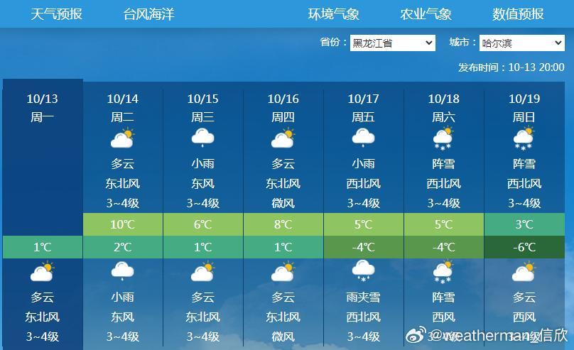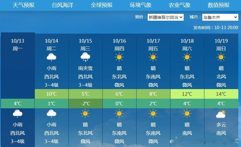预计10月13日20时至14日20时,新疆沿天山地区、内蒙古东部、吉林西部等地有小到中雪或雨夹雪,局地有大到暴雪。10月14日20时至15日20时,内蒙古东北部、吉林西部、新疆北疆东部等地部分地区有小到中雪或雨夹雪。10月15日20时至16日20时,内蒙古东北部、黑龙江西部等地部分地区有小到中雪或雨夹雪。
