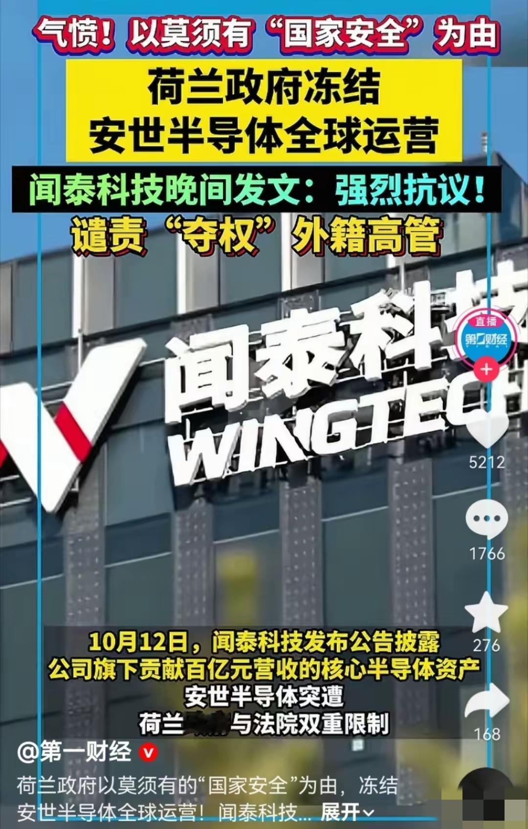 闻泰科技这波被荷兰“背刺”,看得人火冒三丈!砸340多亿收购的安世半导体,年营收147亿的核心资产,说被冻结就被冻结了 。 荷兰政府拿“国家安全”当幌子,一纸令状冻了安世全球30个主体的资产,不准动也不准调,有效期还一年 。更恶心的是,三个外籍高管立马跟进,联合告到法院,没庭审就先把闻泰老板张学政的职务停了,股权也给托管了第三方 。这哪是商业纠纷,分明是里应外合的夺权。 平时挂嘴边的“契约精神”呢?中资合法收购、合规运营,说翻脸就用行政手段抢资产,这不就是把商业问题政治化吗。所谓的“市场经济规则”,合着只对他们有利时才算数。 这事给所有出海企业敲了警钟:地缘博弈里,核心资产随时可能成“肥肉”。中资企业出海该怎么防这种“明抢”?来聊聊你的看法~